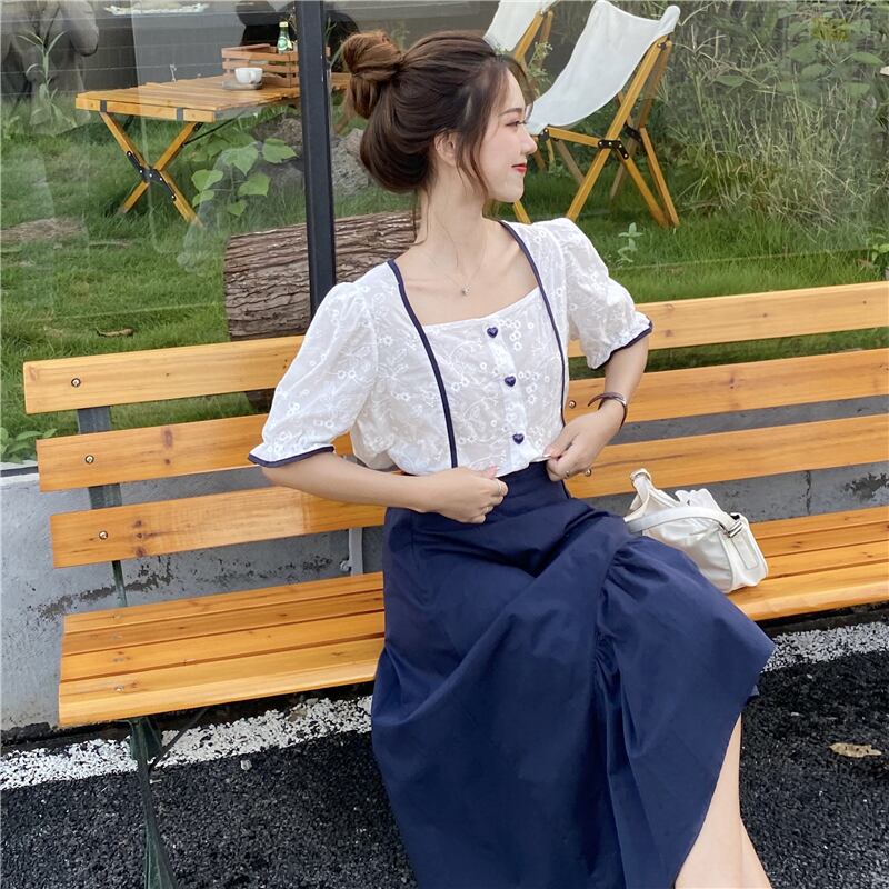 落ち着いた色合いのブルーカラーで大人っぽさをプラス!お出かけやデートにオススメです?