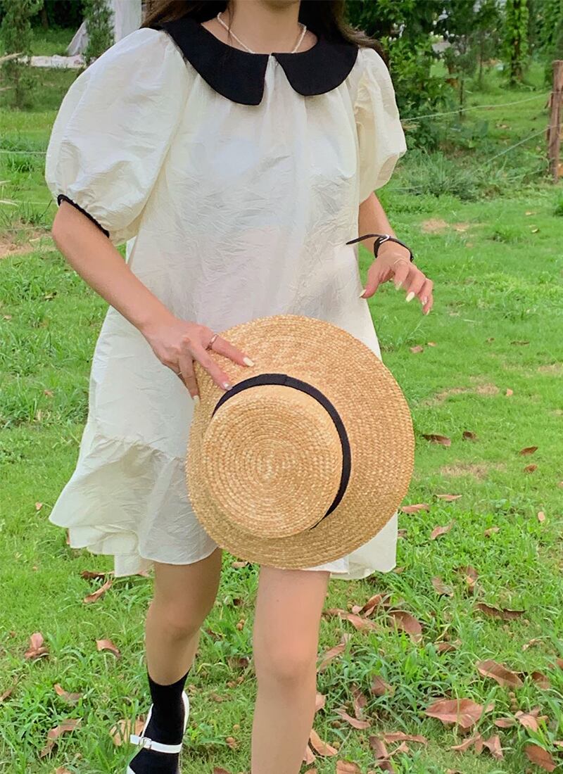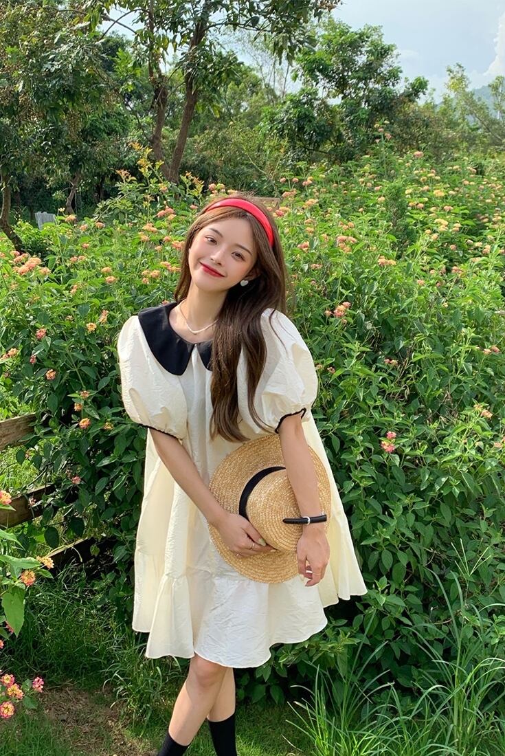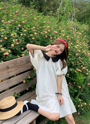 【韓国通販 dgo】big collar puff sleeve white dress(B1039)