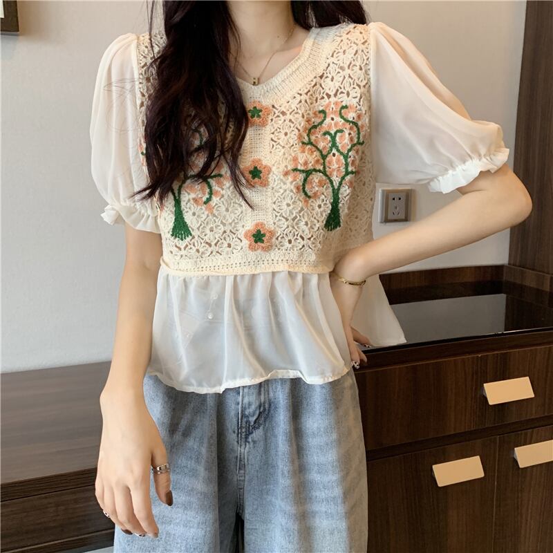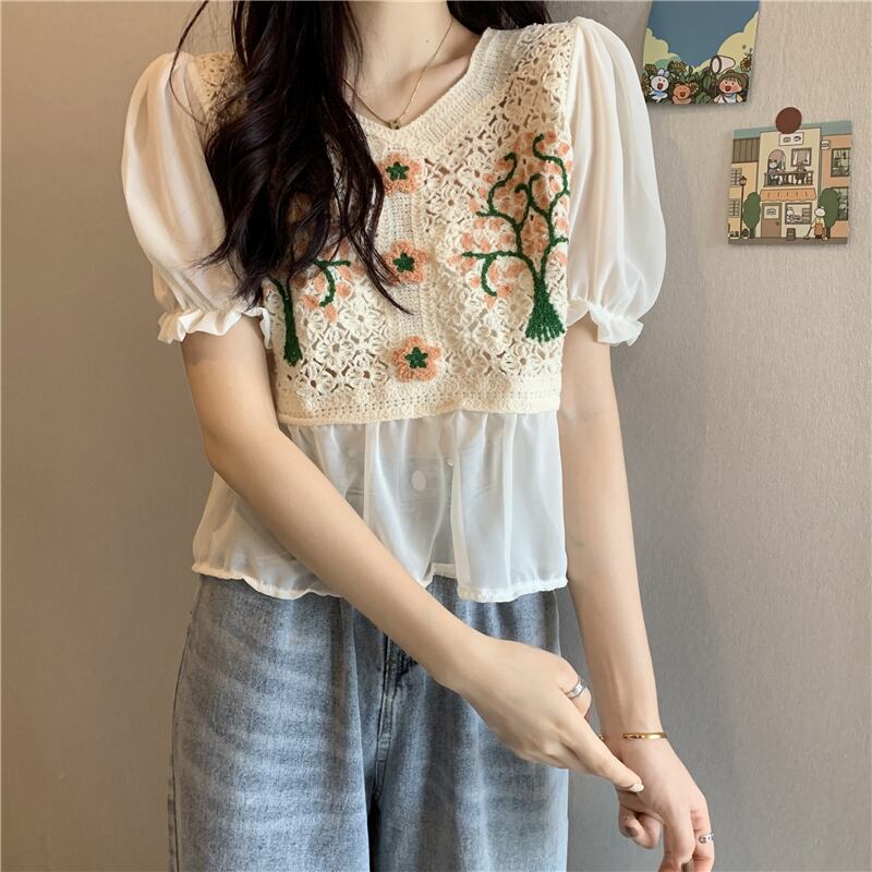 【韓国通販 dgo】french v-neck short tops 2colors(B1026)