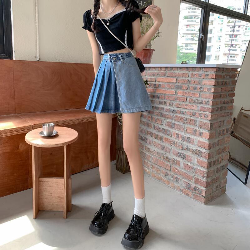 【韓国通販 dgo】high-waist denim pleated skirt(B1036)