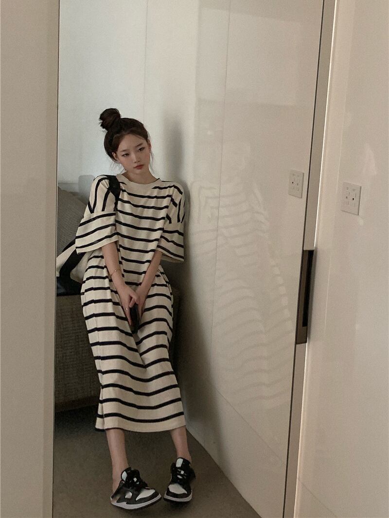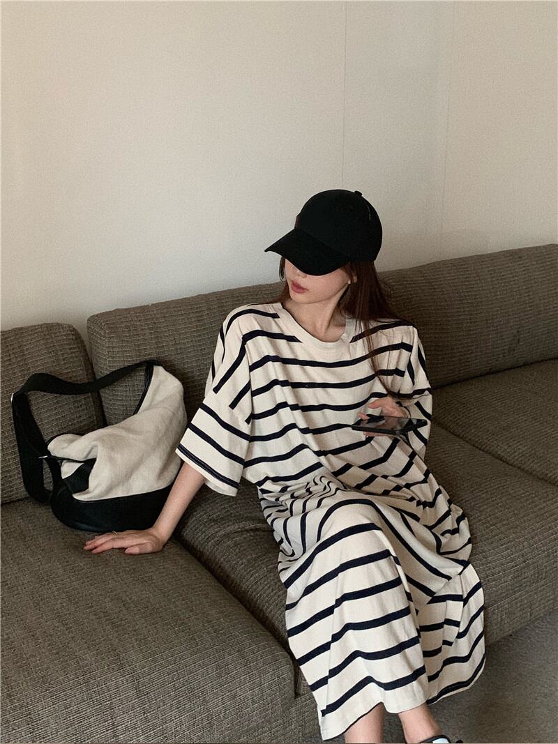 【韓国通販 dgo】stripe casual long dress (B1041)