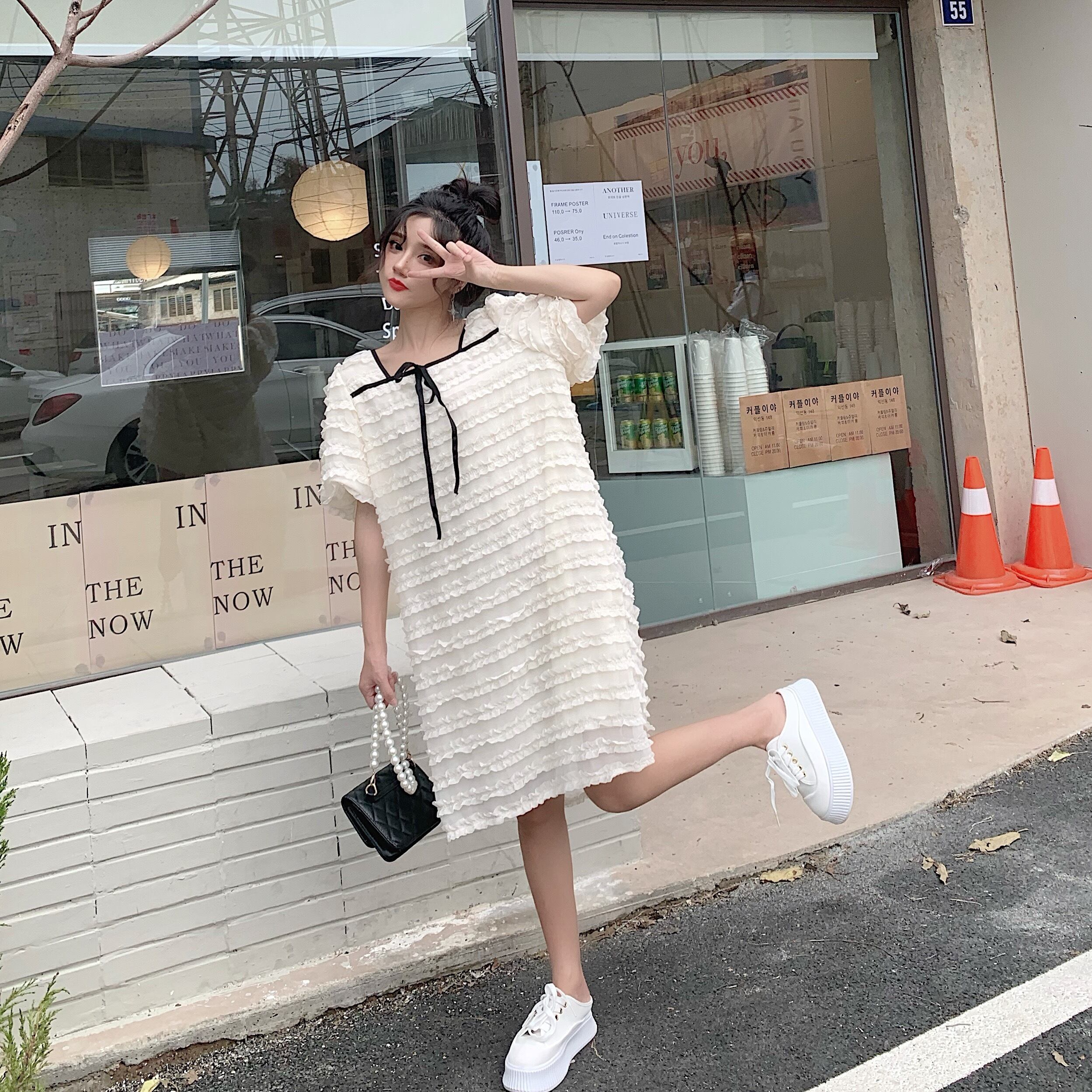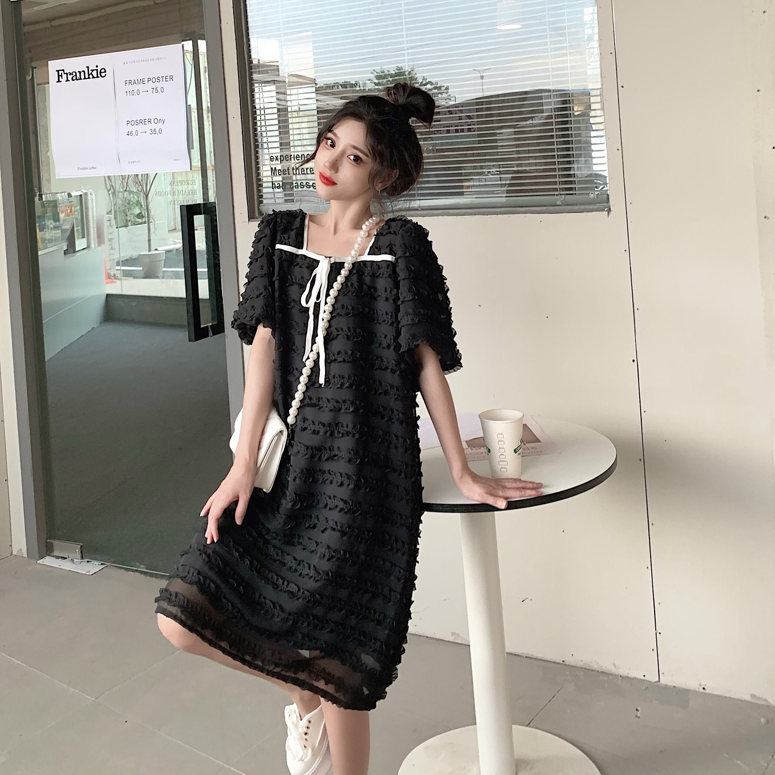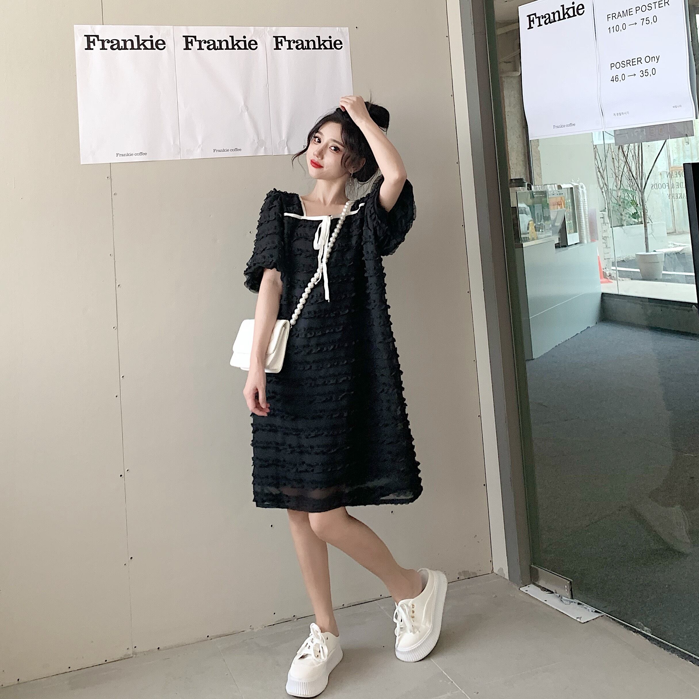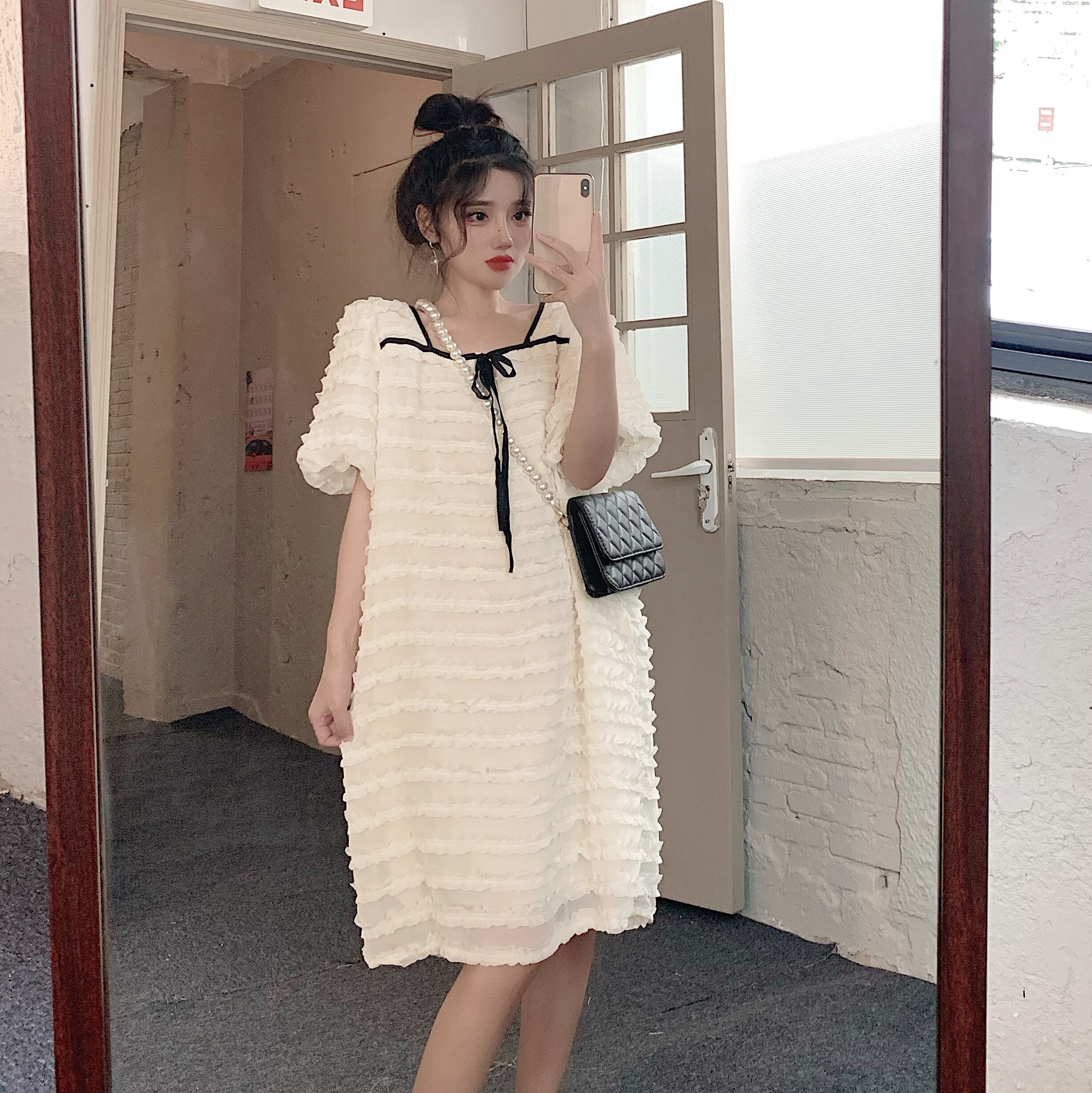 【韓国通販 dgo】puff sleeve french style lace dress(B1043)