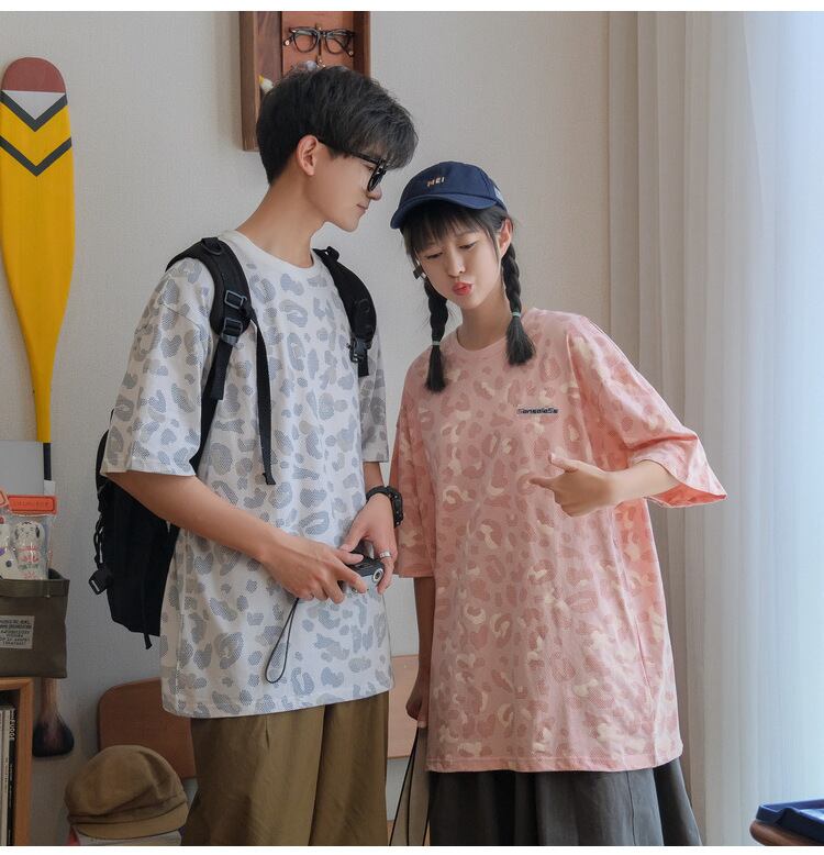 【韓国通販 dgo】round neck leopard print T-shirt 2colors(unisex)(B1050)