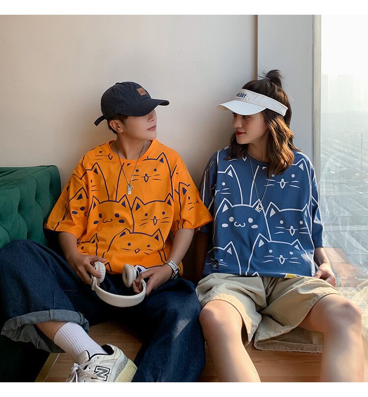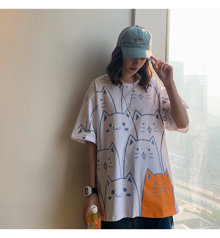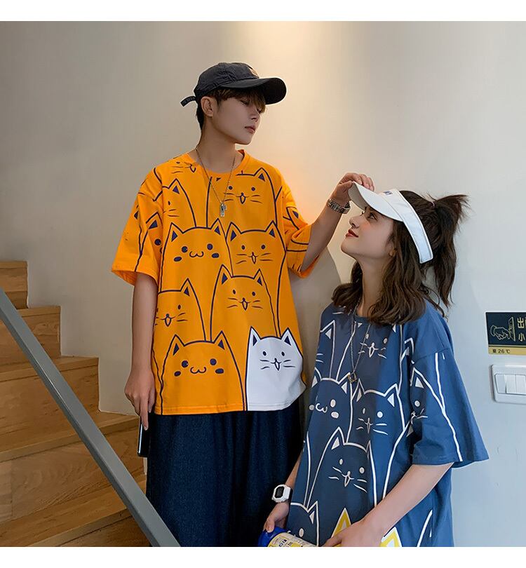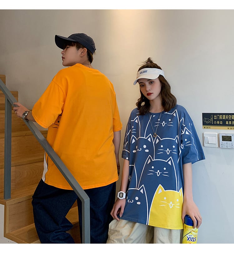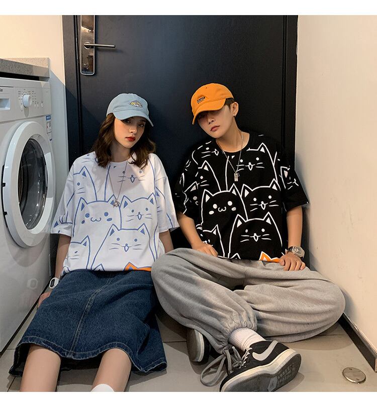 【韓国通販 dgo】round neck cat T-shirt 4colors(unisex)(B1051)
