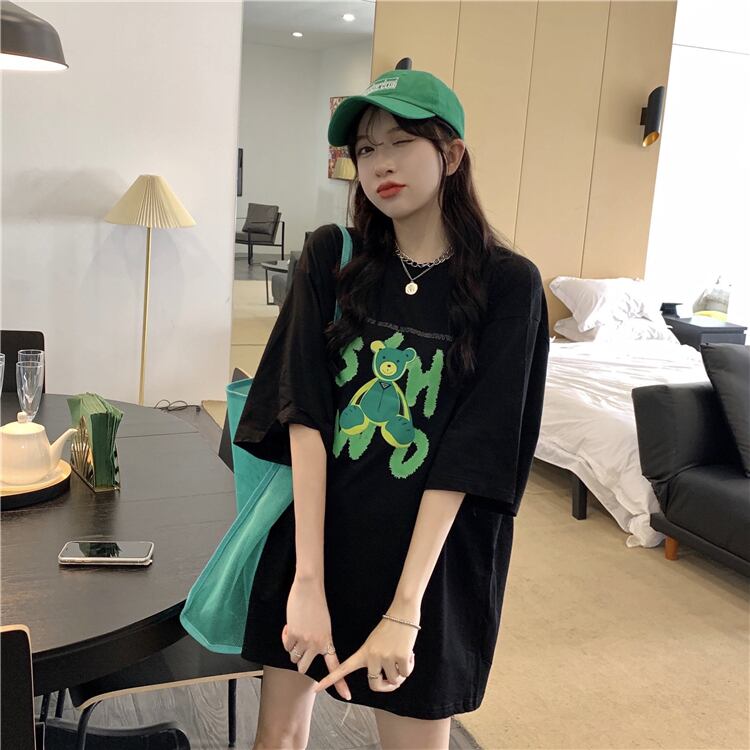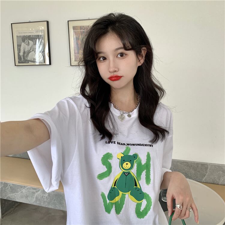 【韓国通販 dgo】middle-length bear design T-shirt 2colors(B1060)