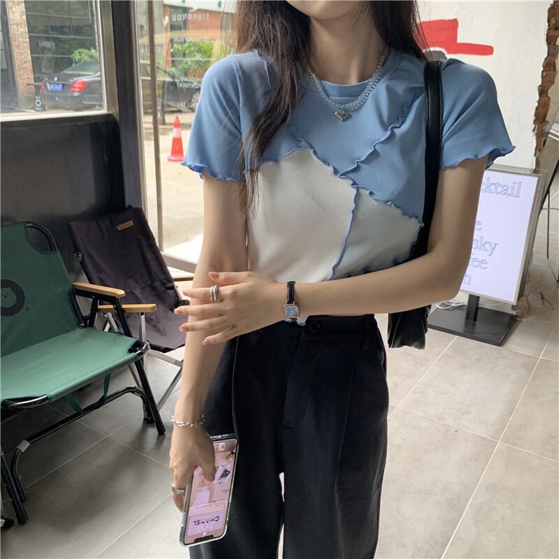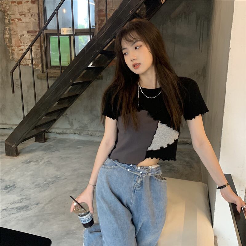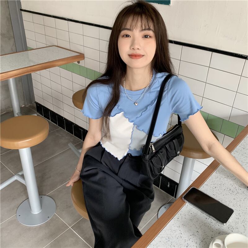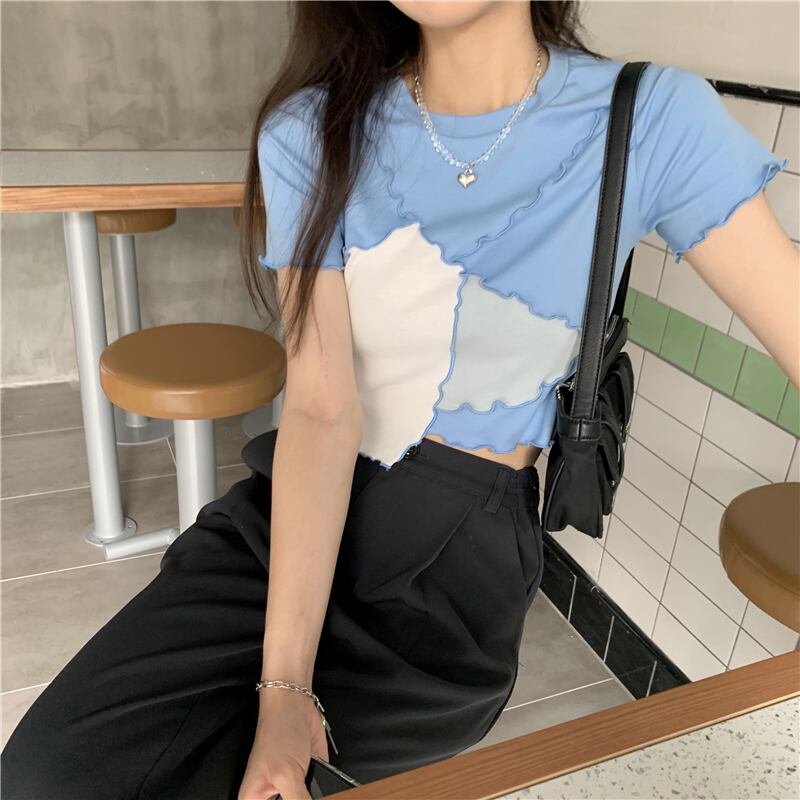 【韓国通販 dgo】round neck high-waist short tops 2colors(B1065)
