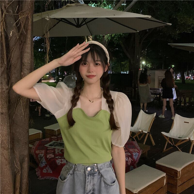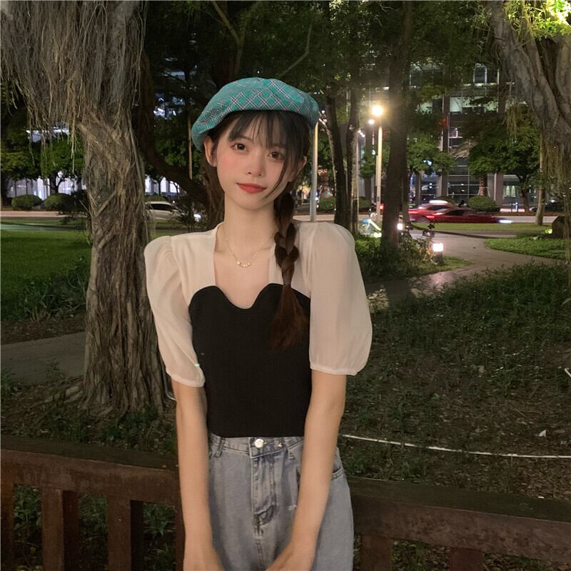 【韓国通販 dgo】square neck sheer short tops 2colors(B1070)