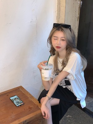 【韓国通販 dgo】American retro round neck white T-shirt (B1071)
