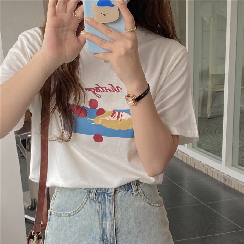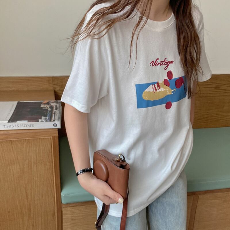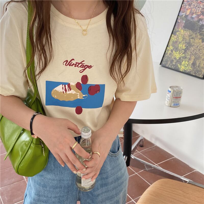 【韓国通販 dgo】round neck print T-shirt 2colors(B1080)