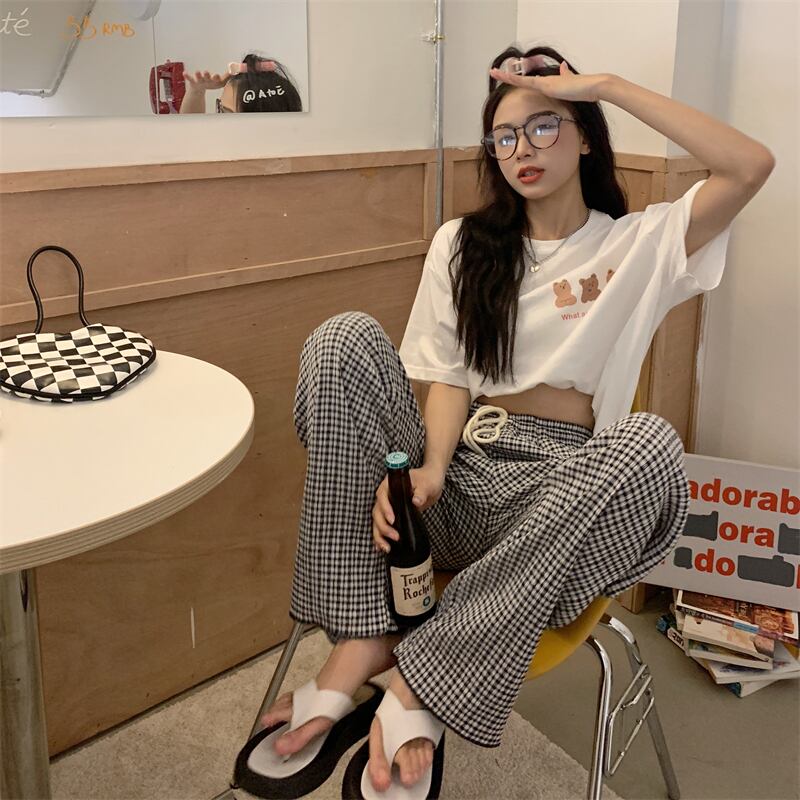 【韓国通販 dgo】checked high-waist casual pants(B1096)