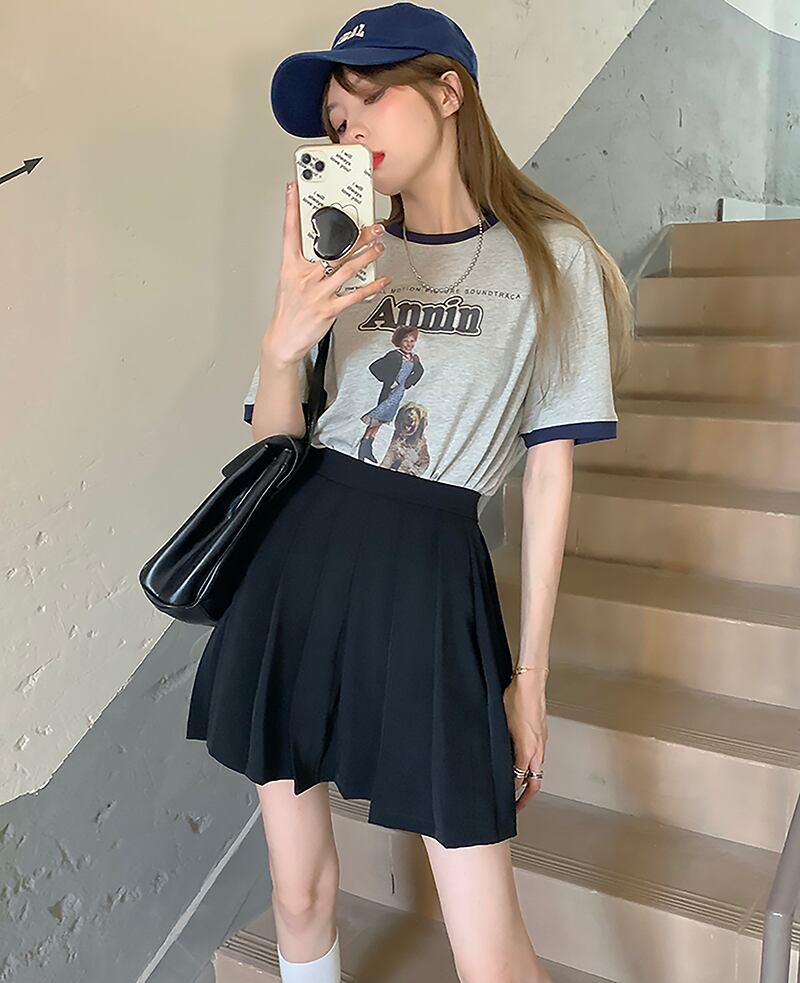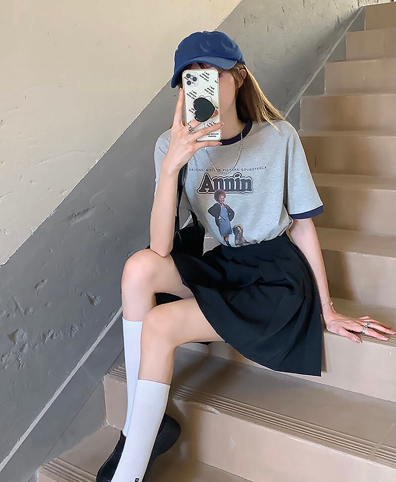 【韓国通販 dgo】American retro round neck T-shirt 2colors(B1100)