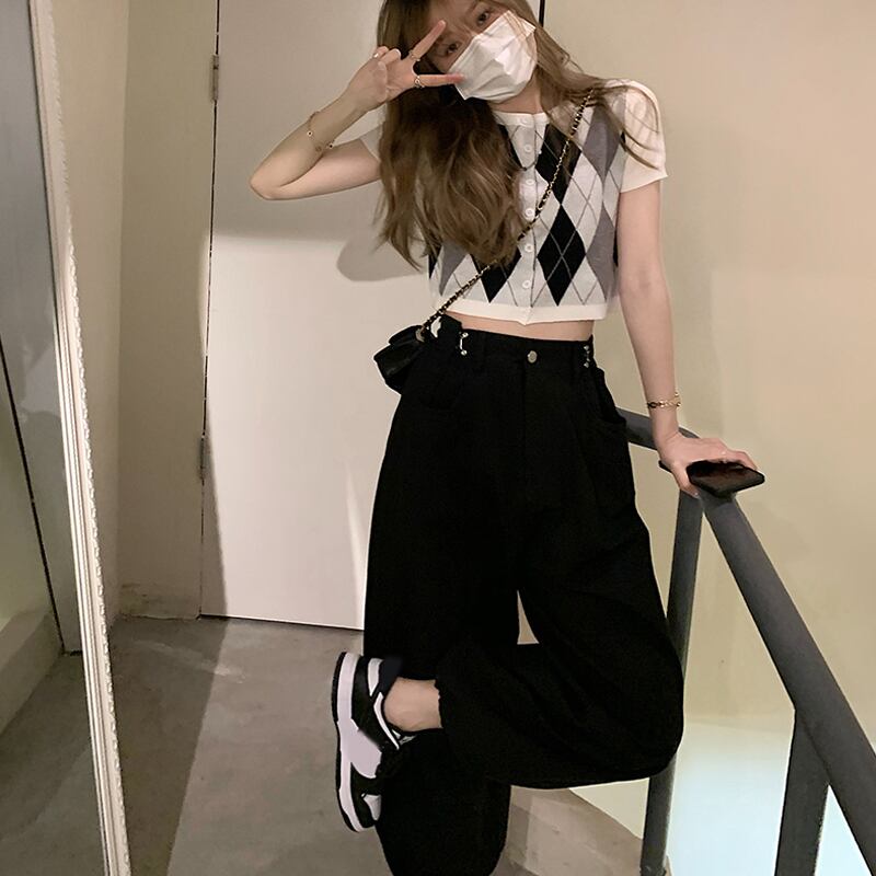 【韓国通販 dgo】high-waist cropped pants 2colors(B1104)
