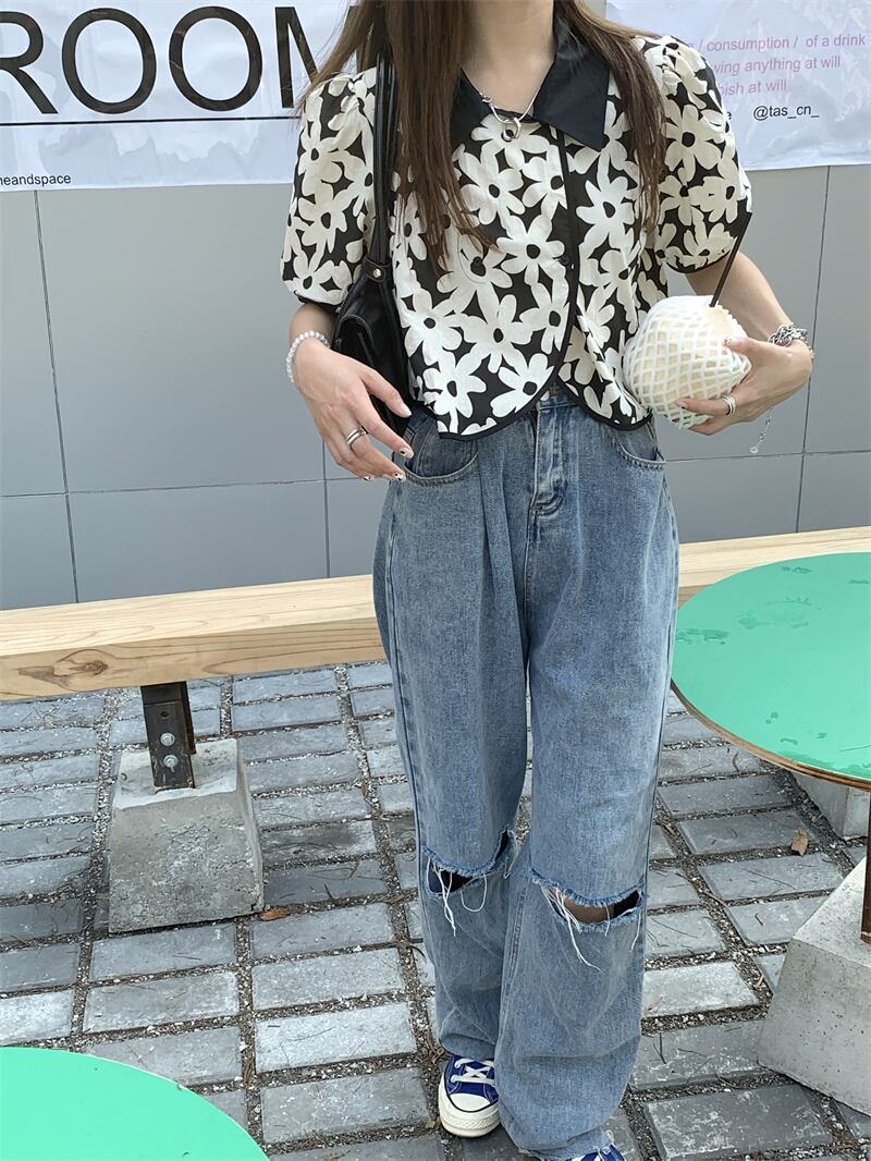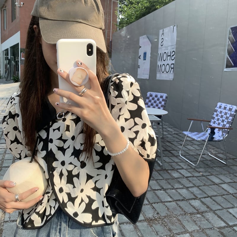 【韓国通販 dgo】puff sleeve floral tops (B1112)