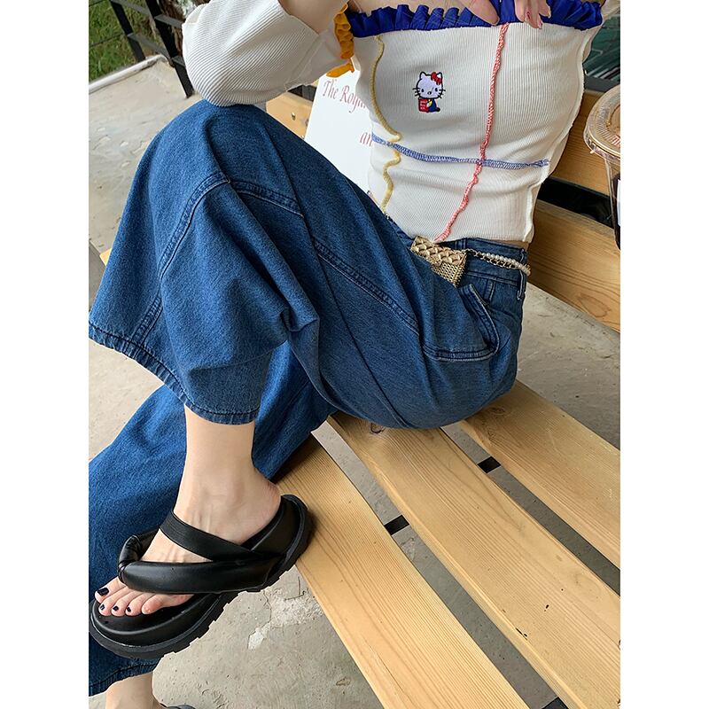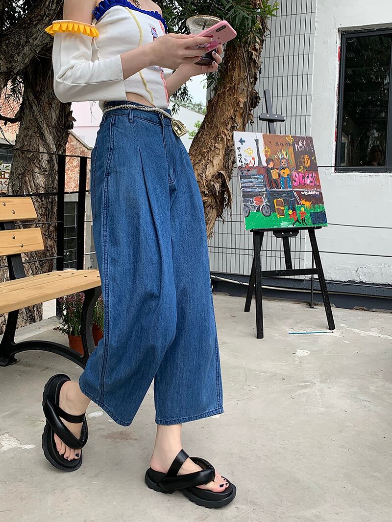 【韓国通販 dgo】high-waist wide-leg cropped jeans(B1140)
