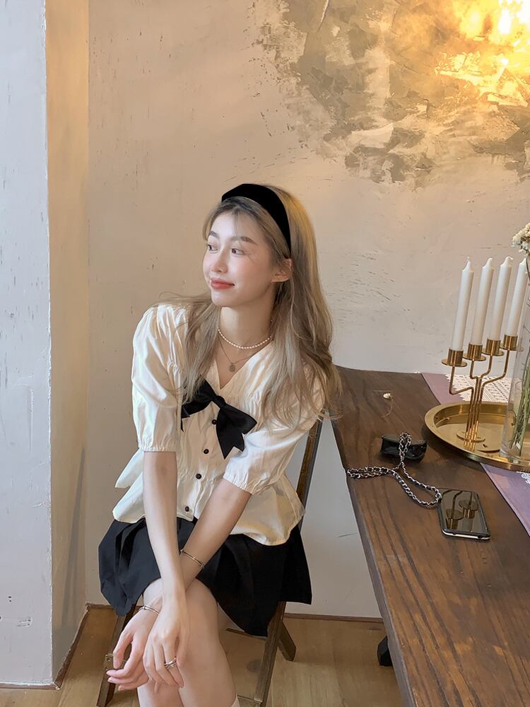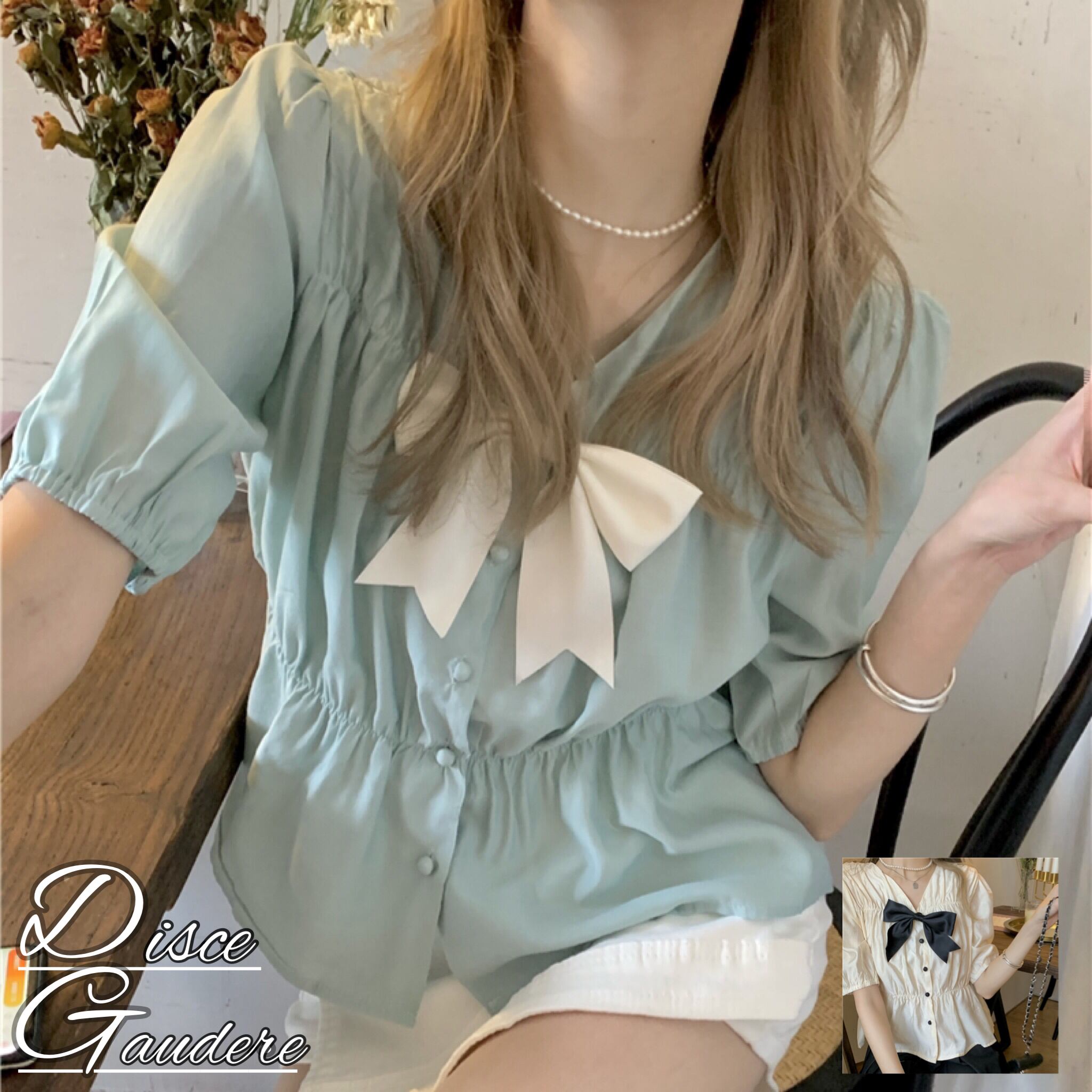 【韓国通販 dgo】french ribbon puff sleeve shirt 2colors(B1141)