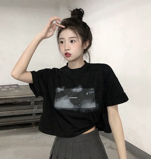 【韓国通販 dgo】round neck print T-shirt 2colors(B1145)