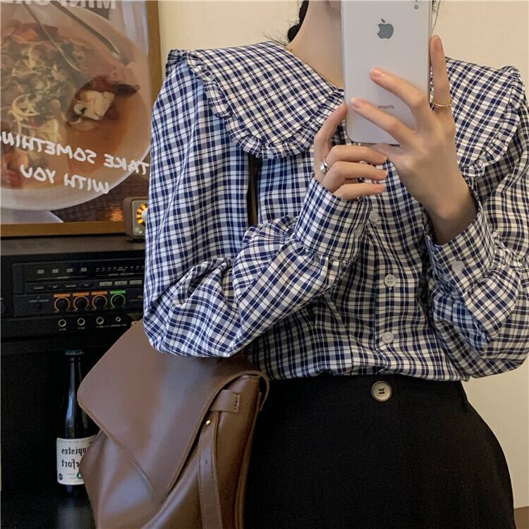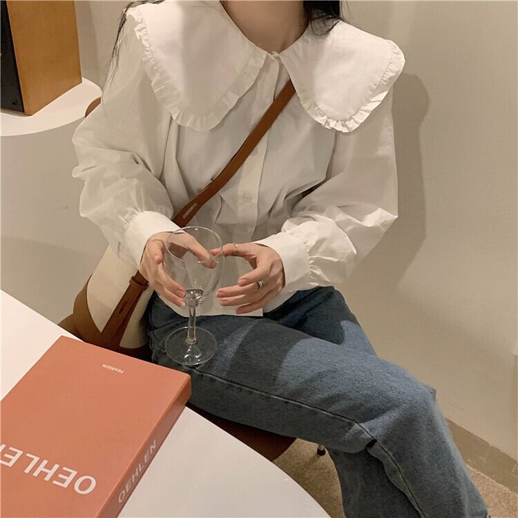 【韓国通販 dgo】french retro big collar shirt 2colors(B1149)