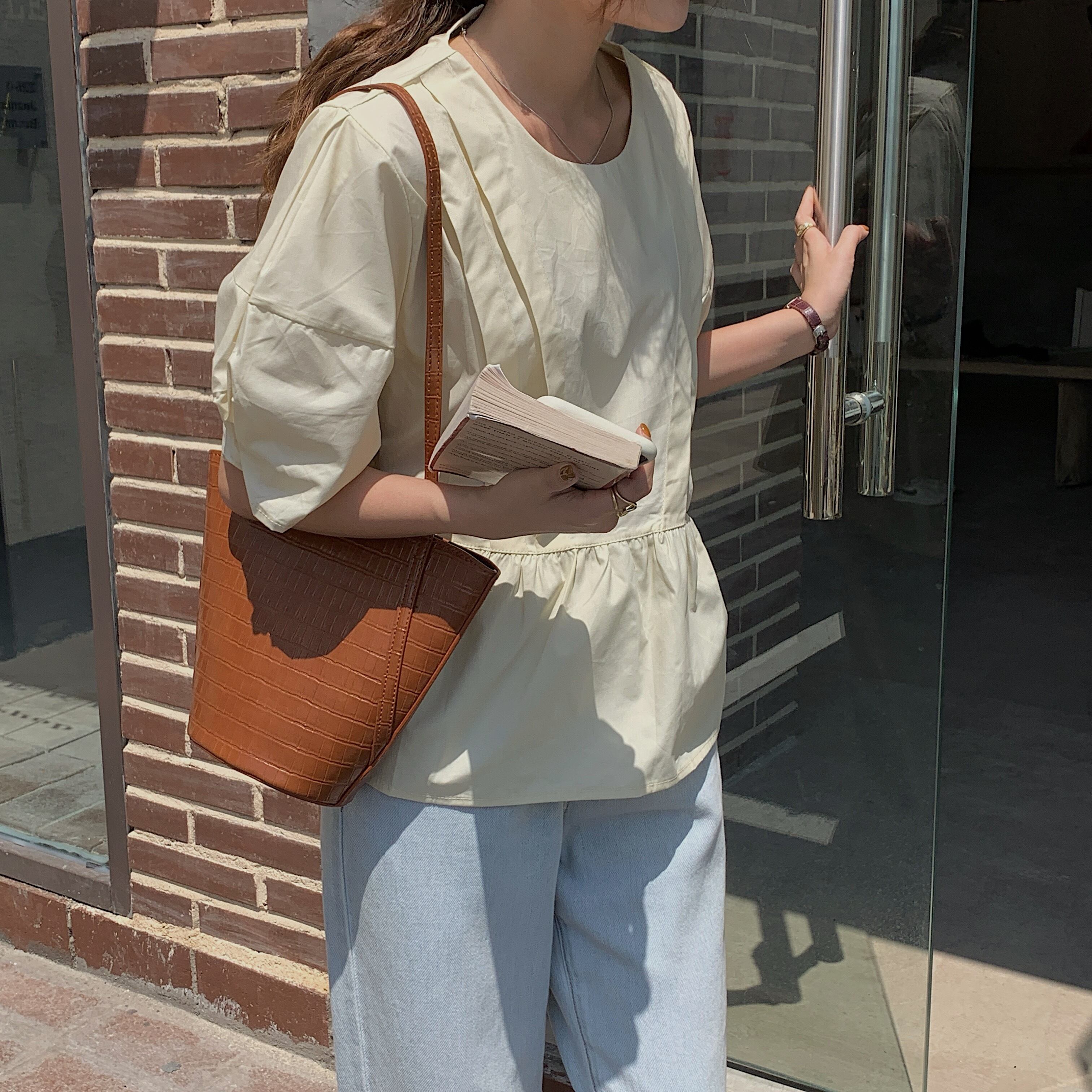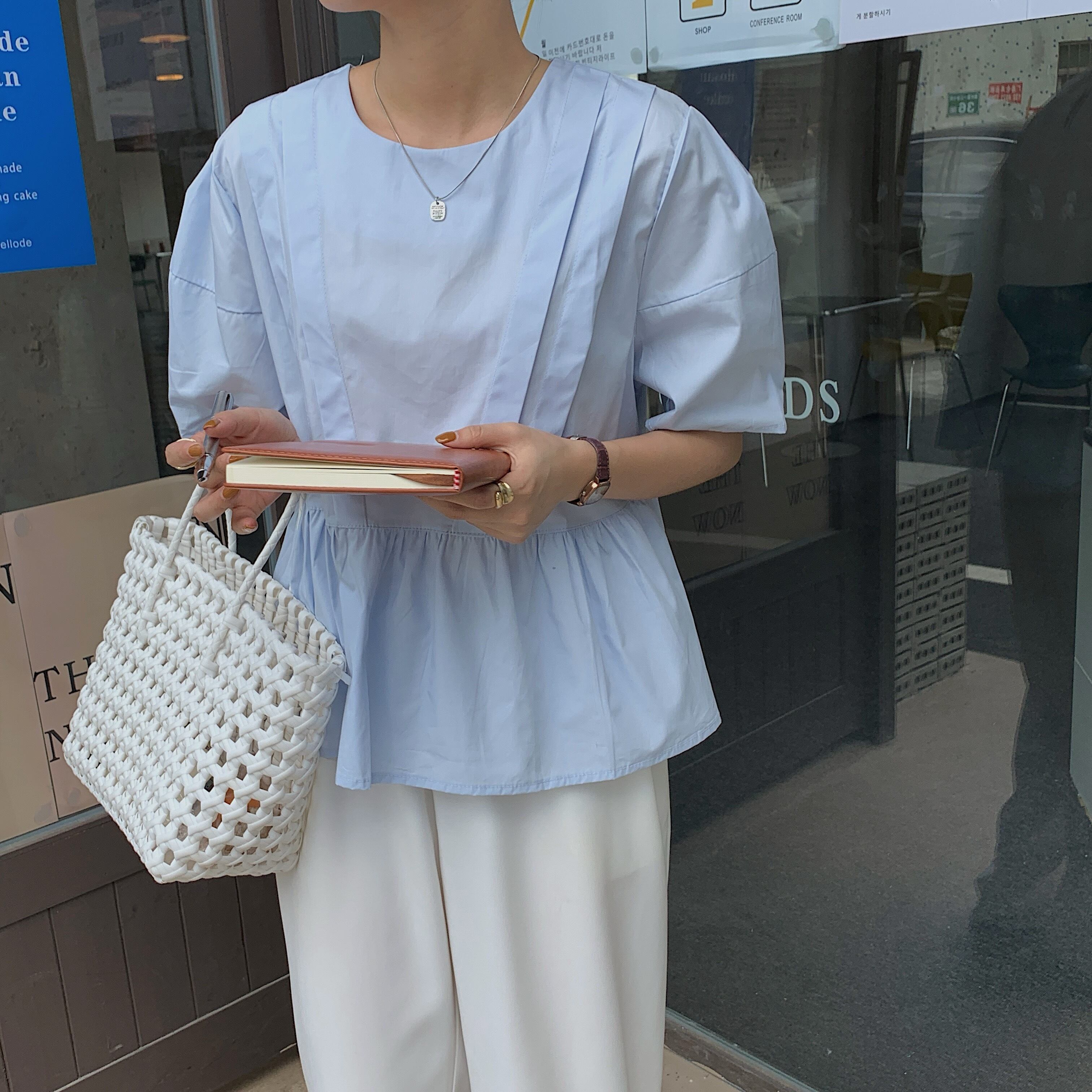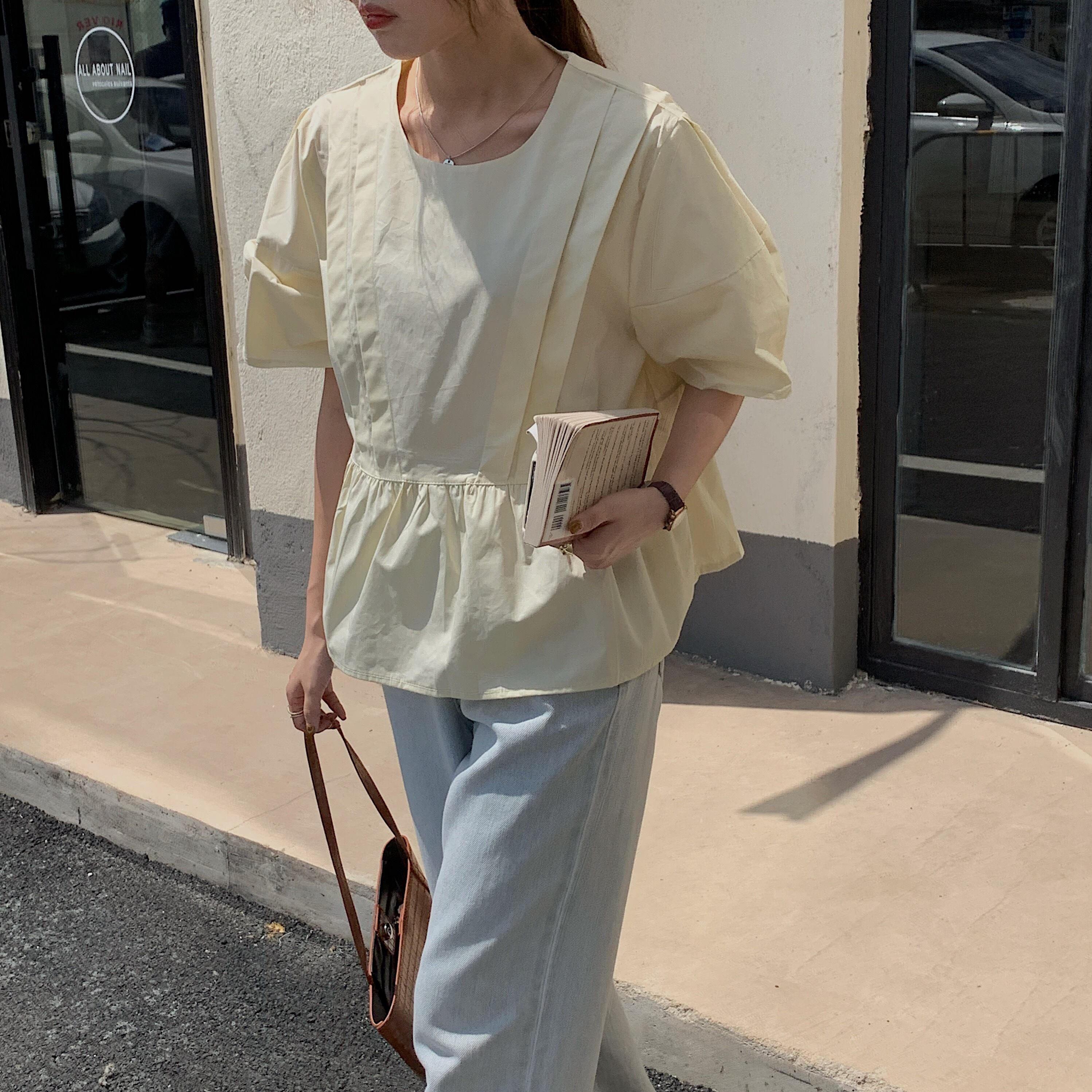 【韓国通販 dgo】round neck puff sleeve blouse 3colors(B1156)