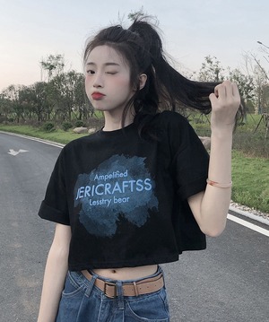 【韓国通販 dgo】round neck print T-shirt 2colors(B1158)