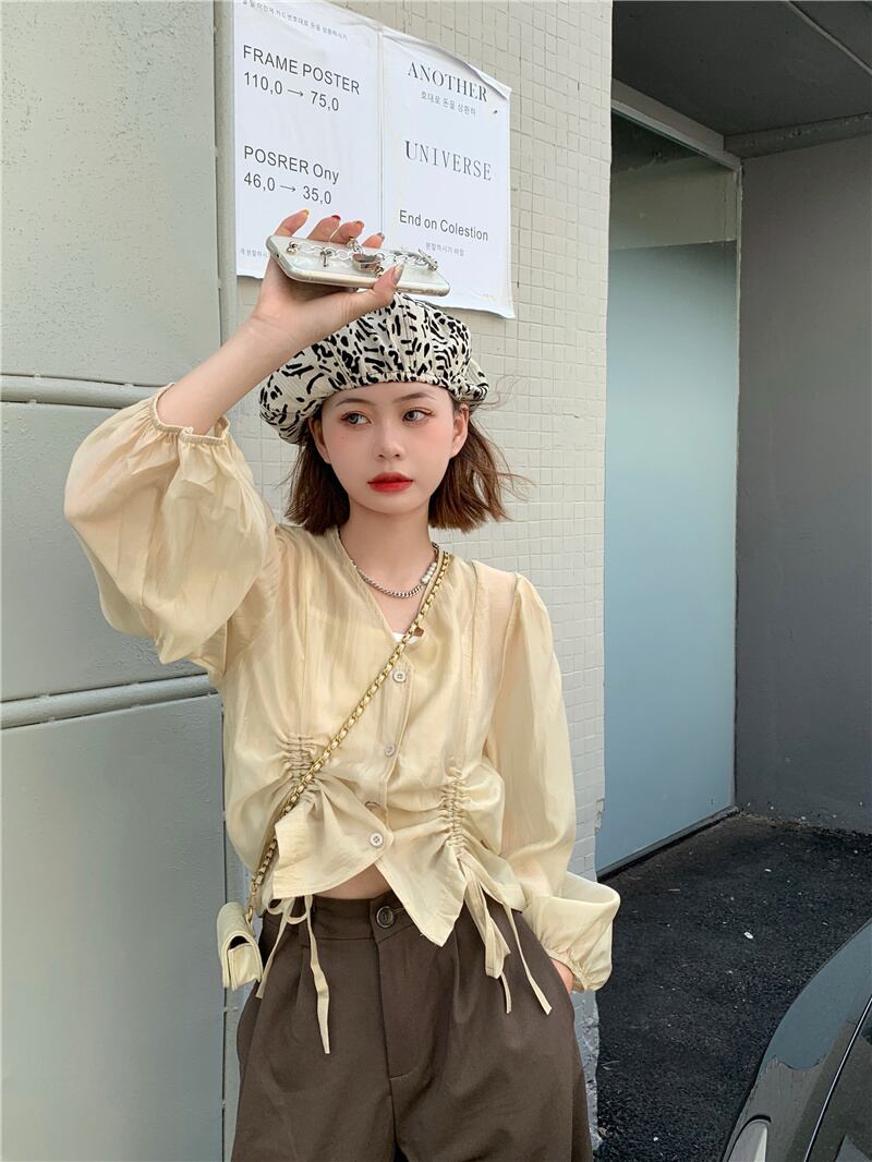 【韓国通販 dgo】french v-neck short tops 2colors(B1166)