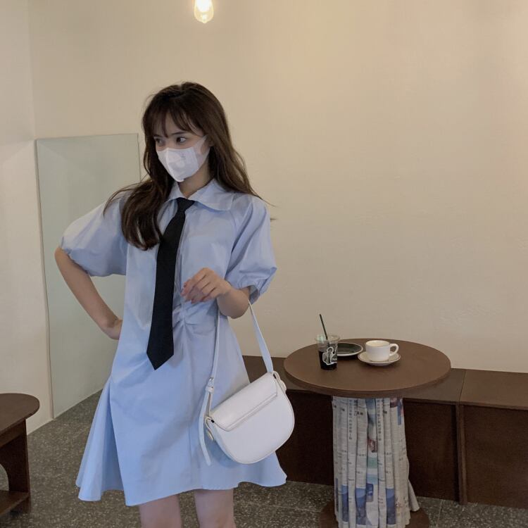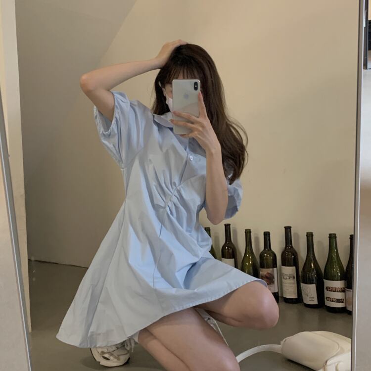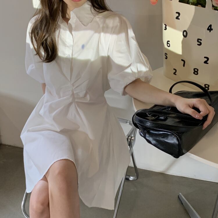 【韓国通販 dgo】high-waist puff sleeve shirt dress 2colors(B1173)