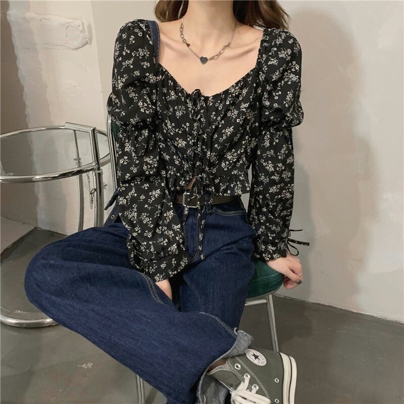 【韓国通販 dgo】v-neck floral short tops 2colors(B1177)