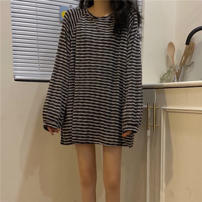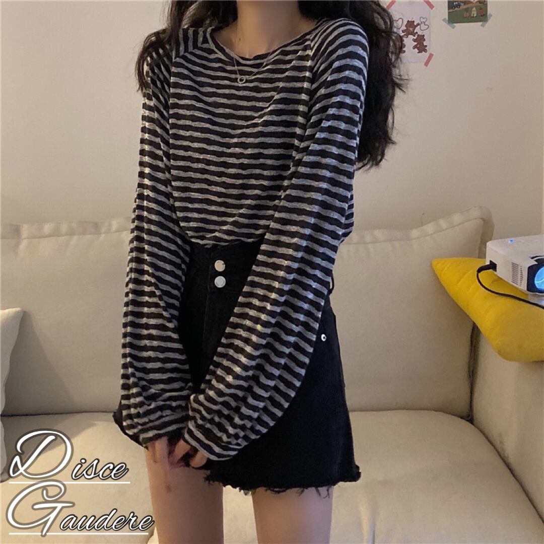 【韓国通販 dgo】middle-length black stripe tops(B1180)