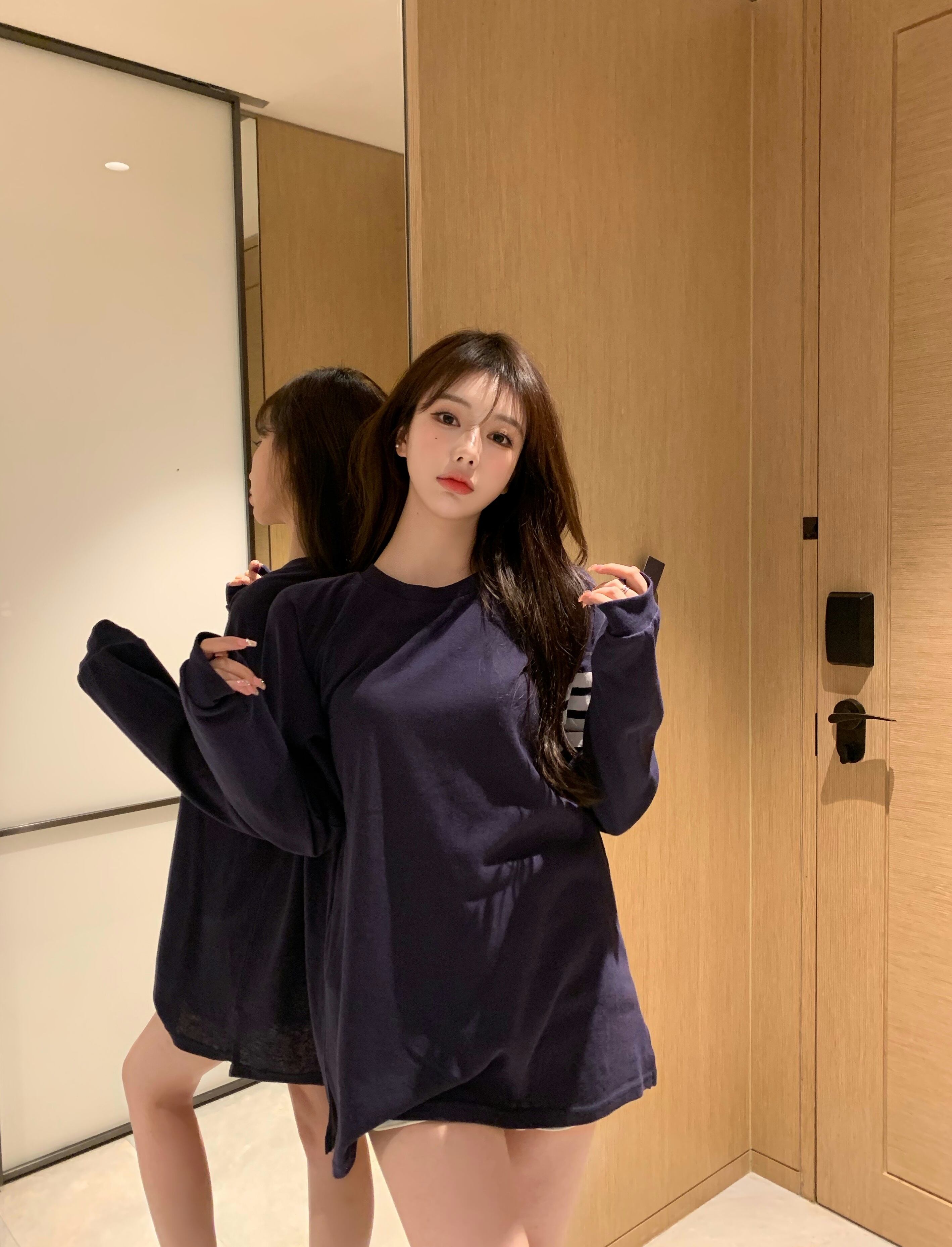 【韓国通販 dgo】round neck long sleeve stripe tops 4colors(B1184)
