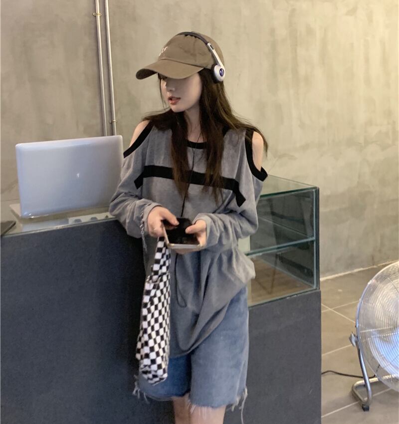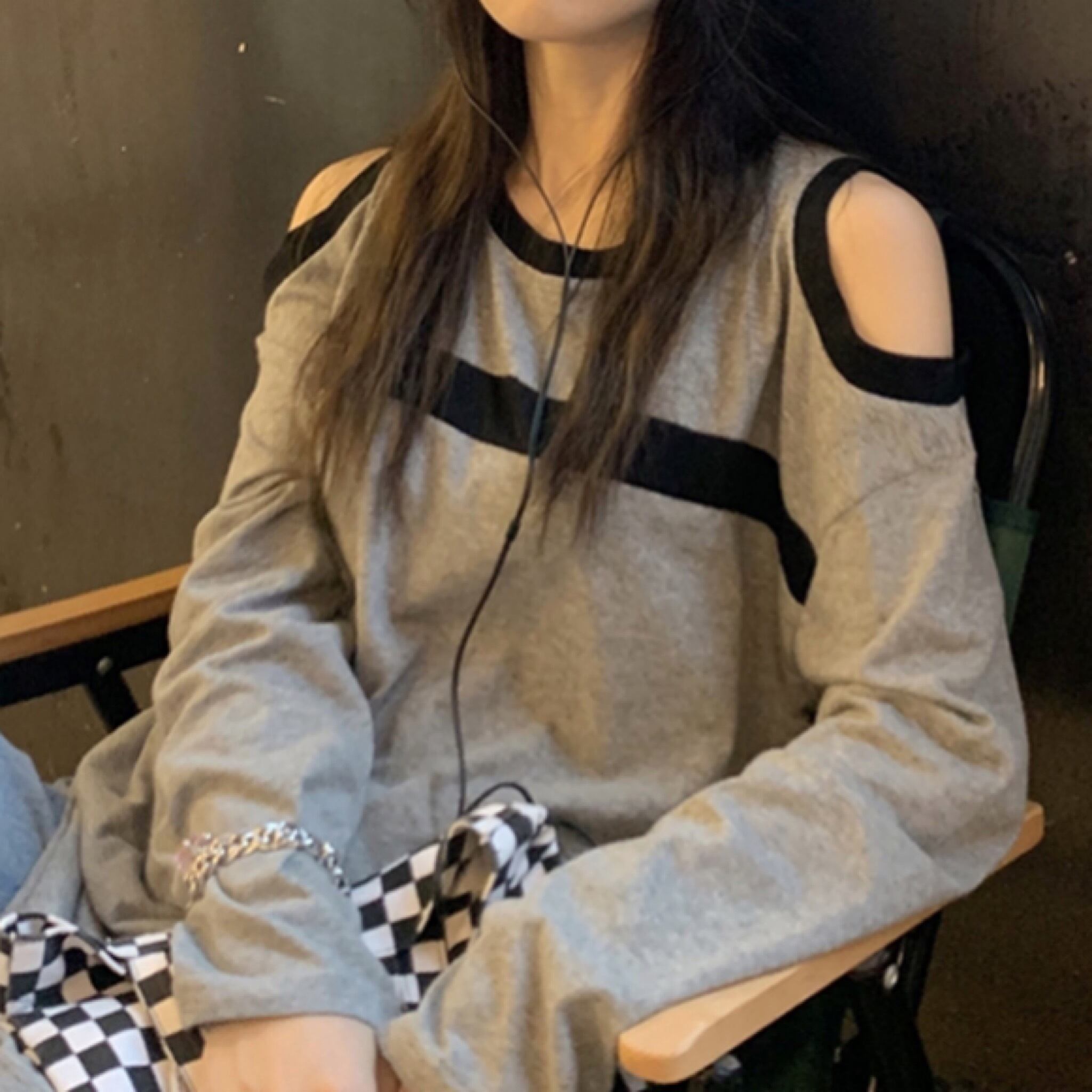 【韓国通販 dgo】round neck off-shoulder tops (B1193)