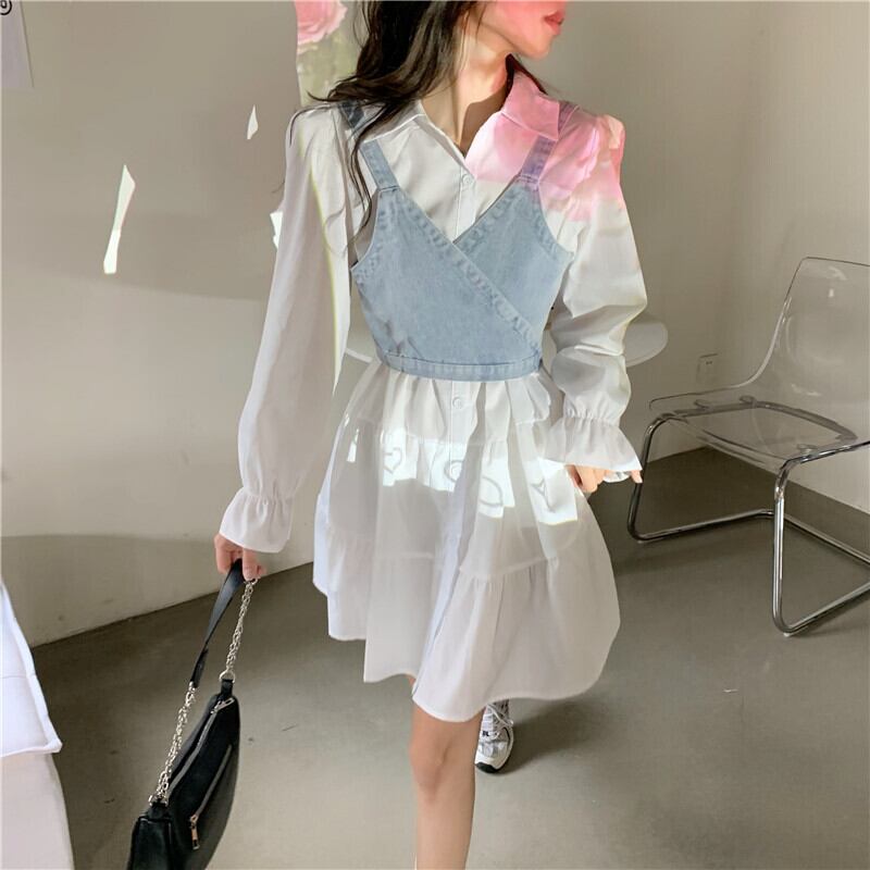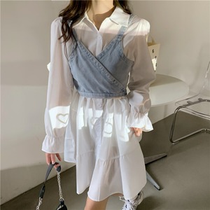 【韓国通販 dgo】french white shirt dress + bustier two-piece (B1167)