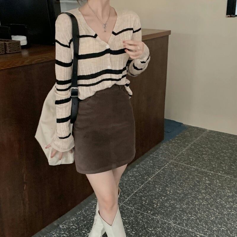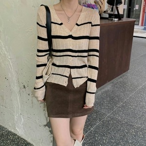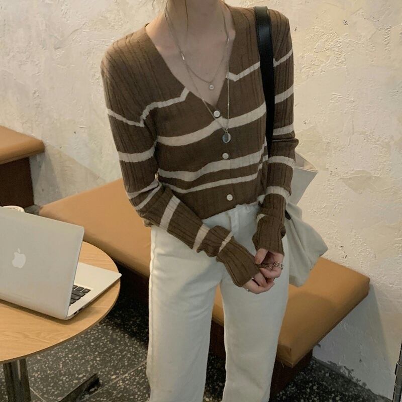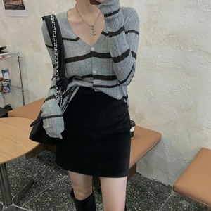【韓国通販 dgo】v-neck border knit 5colors(B1174)