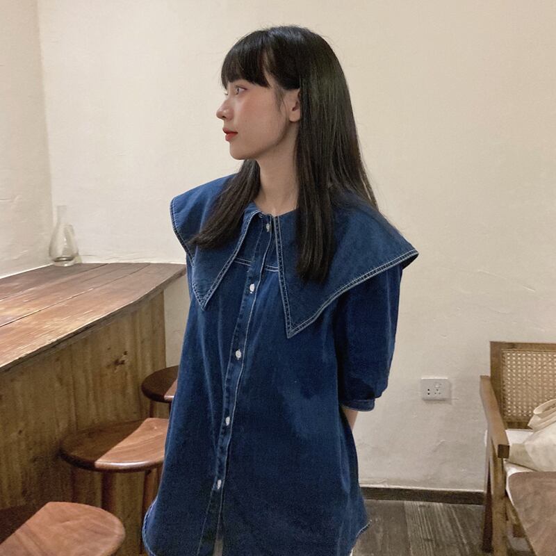 【韓国通販 dgo】denim retro short sleeve tops(B1176)