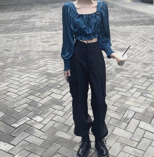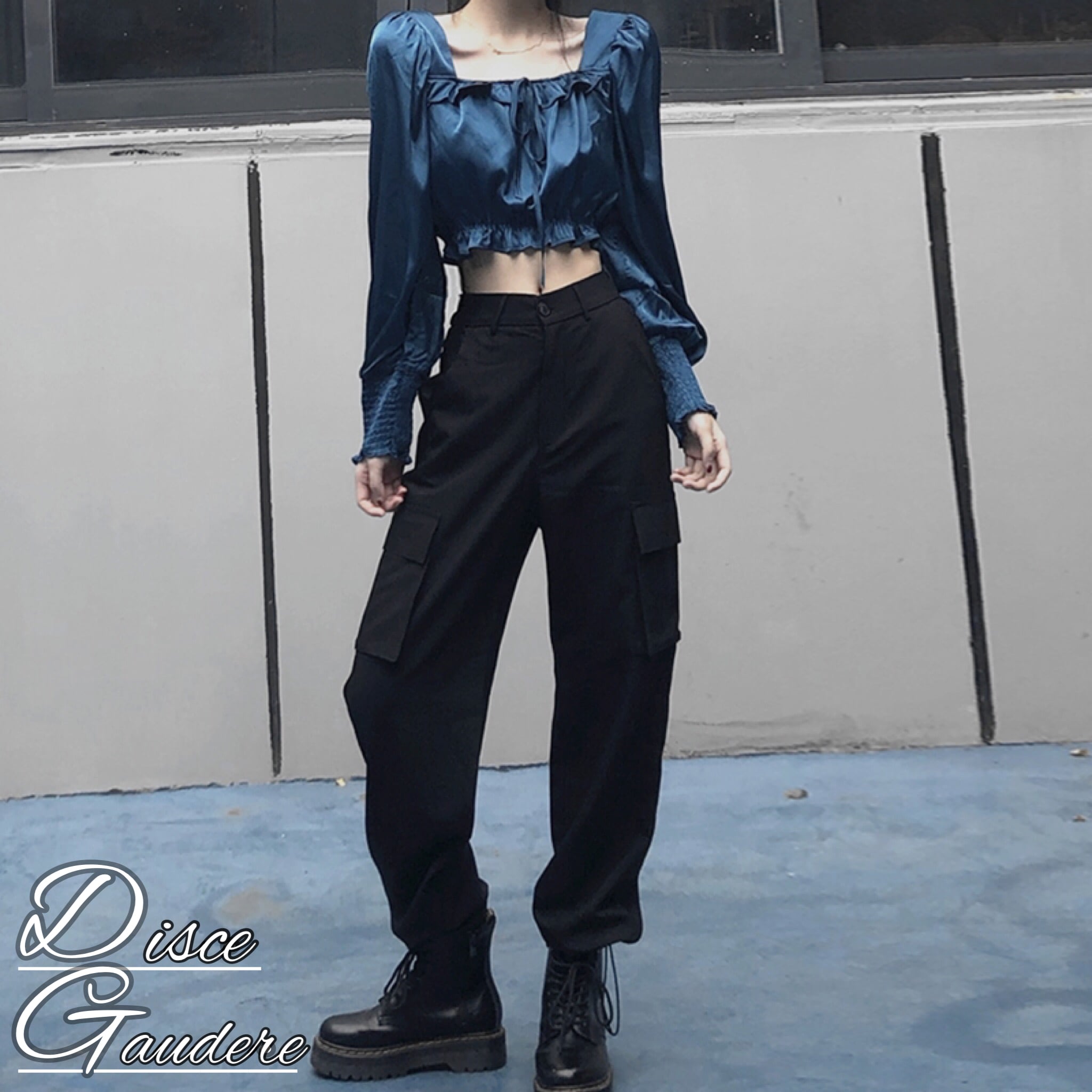 【韓国通販 dgo】high-waist cropped black pants(B1197)
