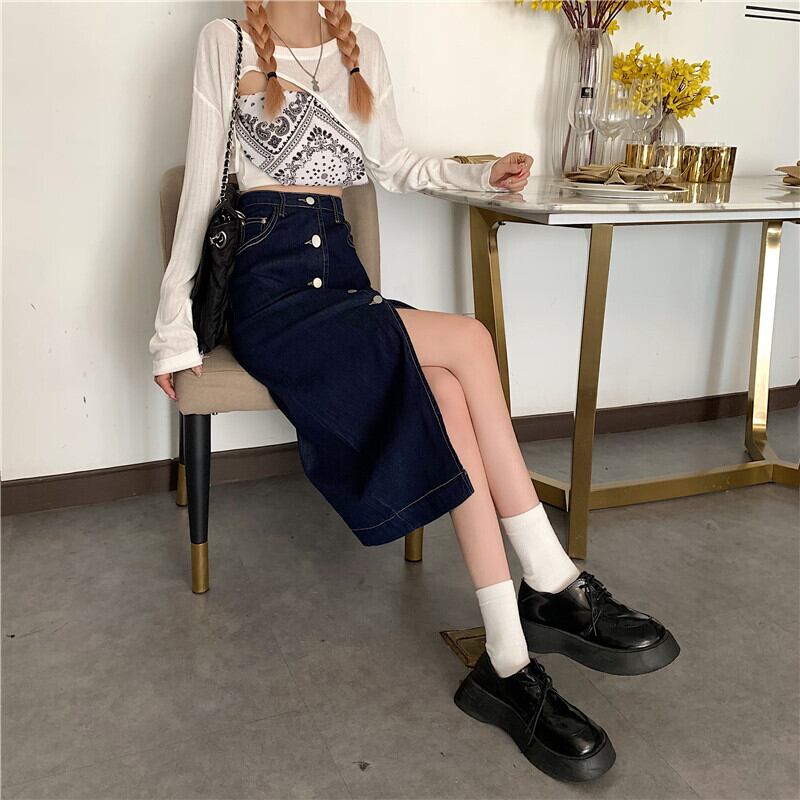 【韓国通販 dgo】high-waist split denim skirt(B1205)