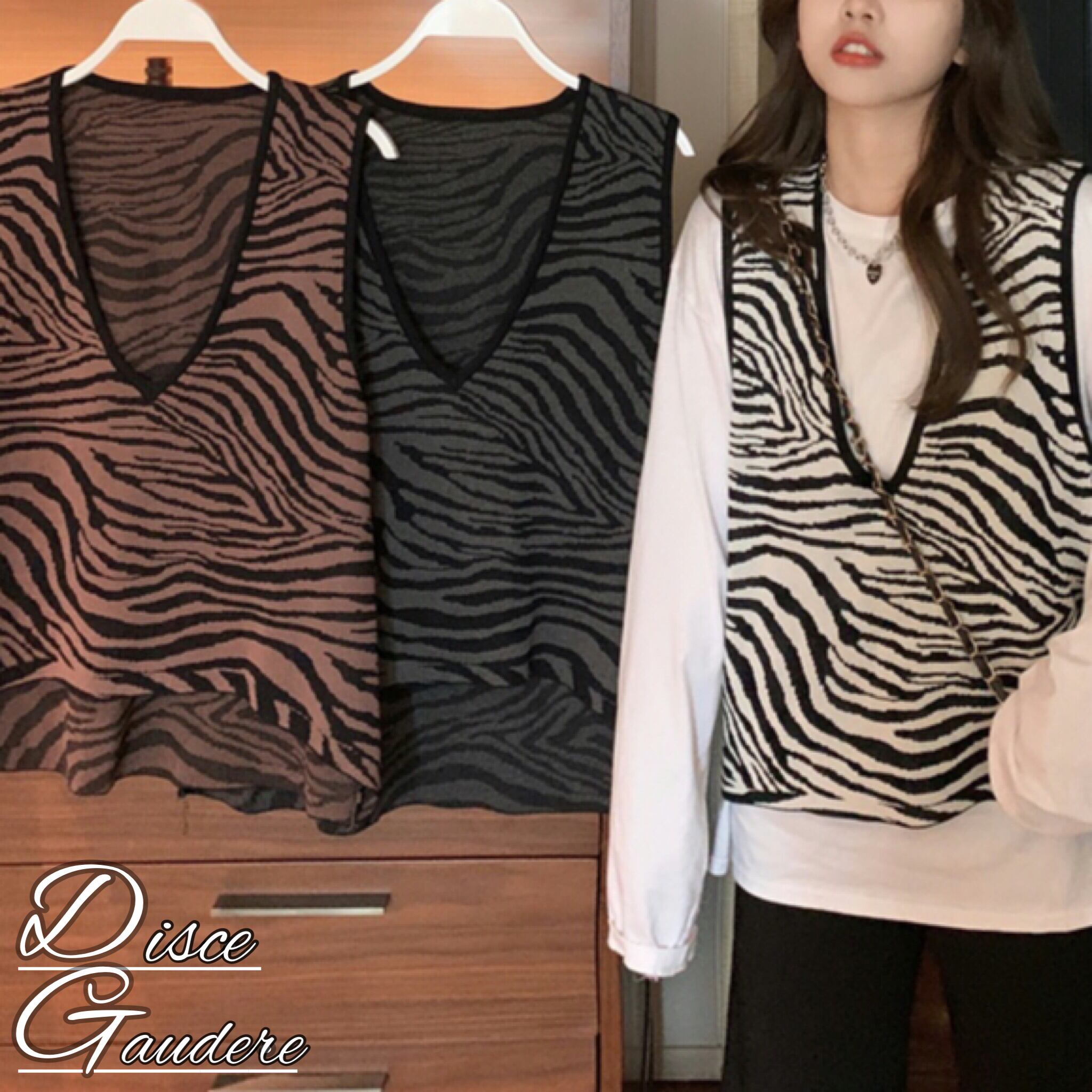 【韓国通販 dgo】v-neck zebra design vest 3colors(B1254)