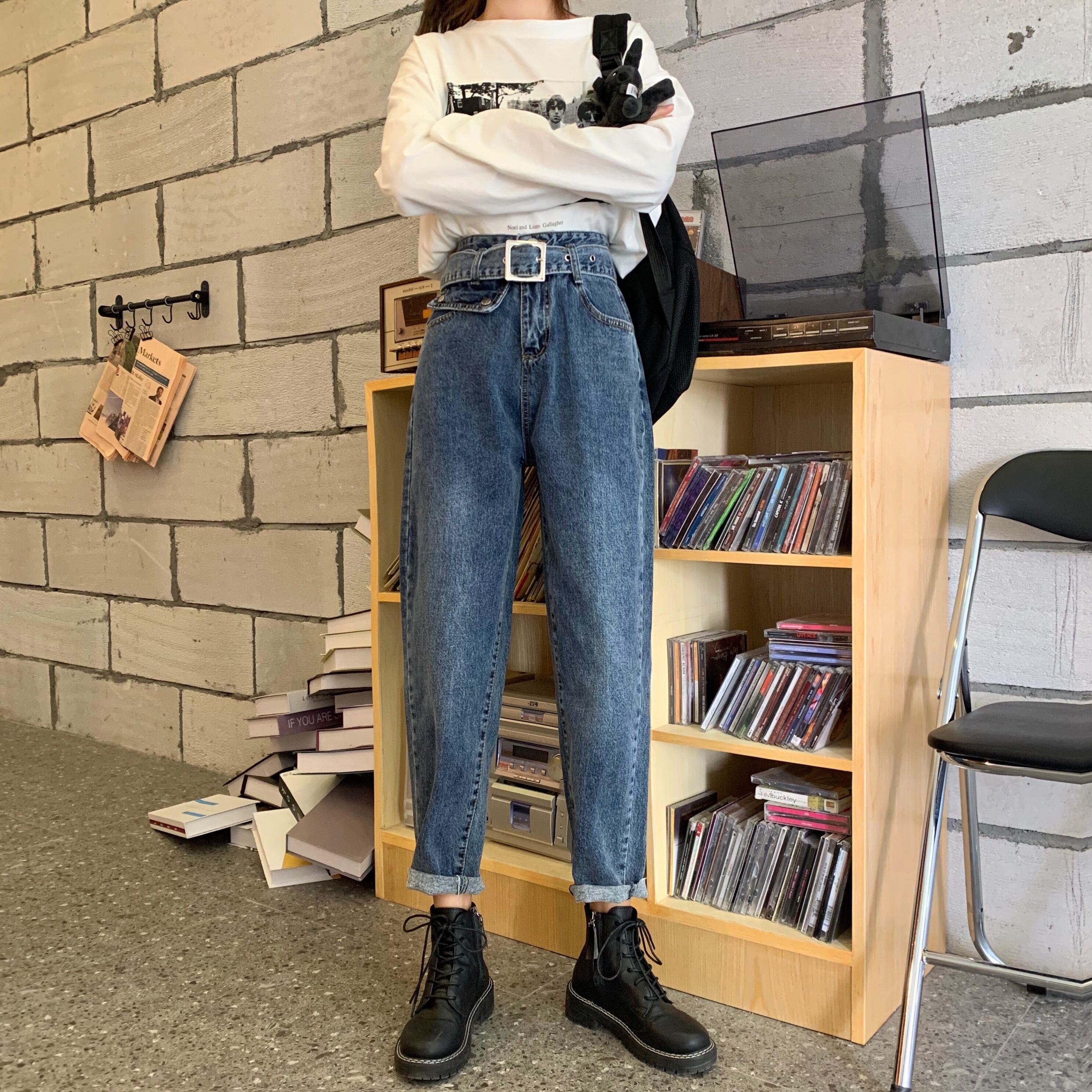 【韓国通販 dgo】high-waist straight jeans(B1263)
