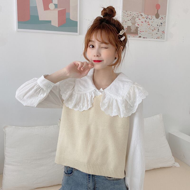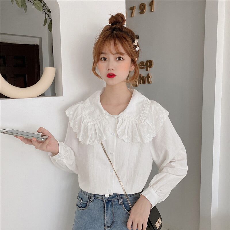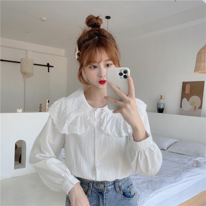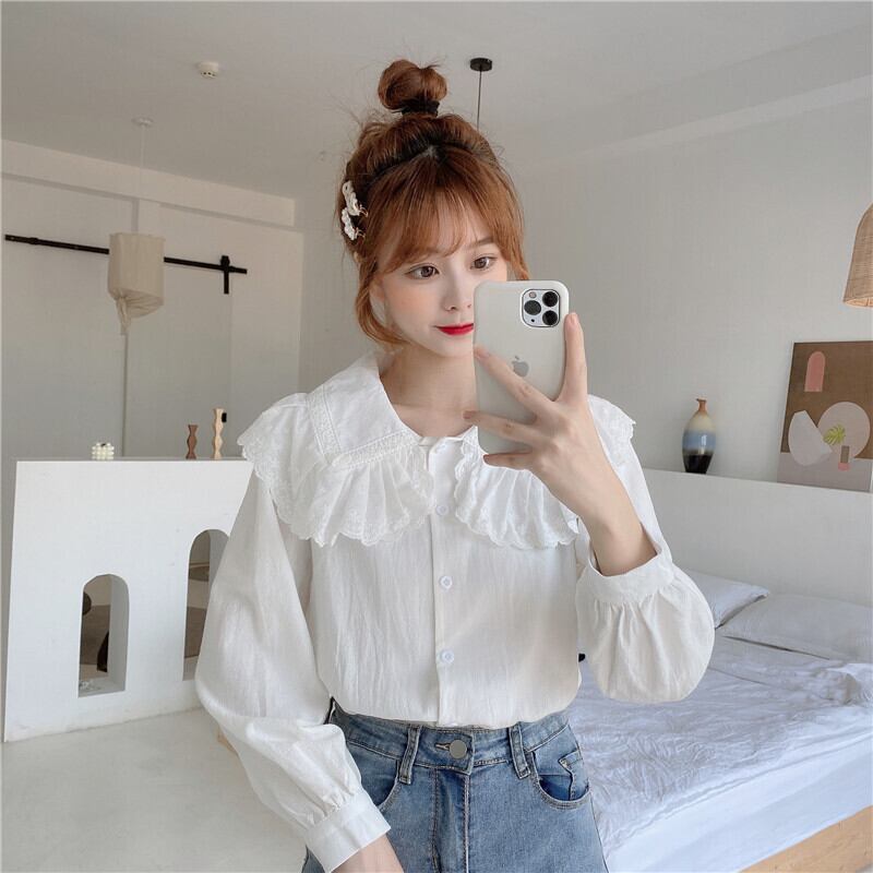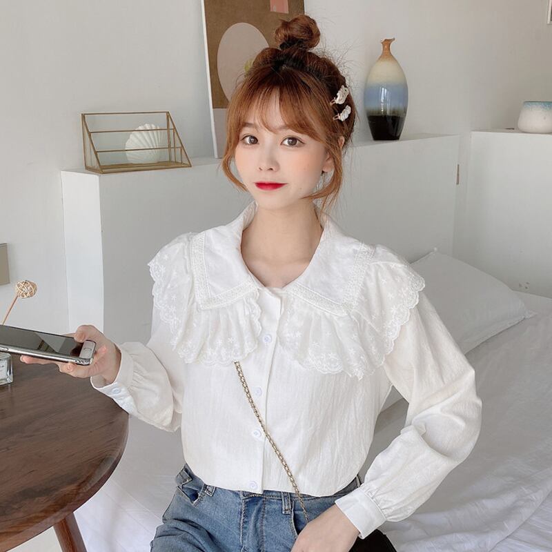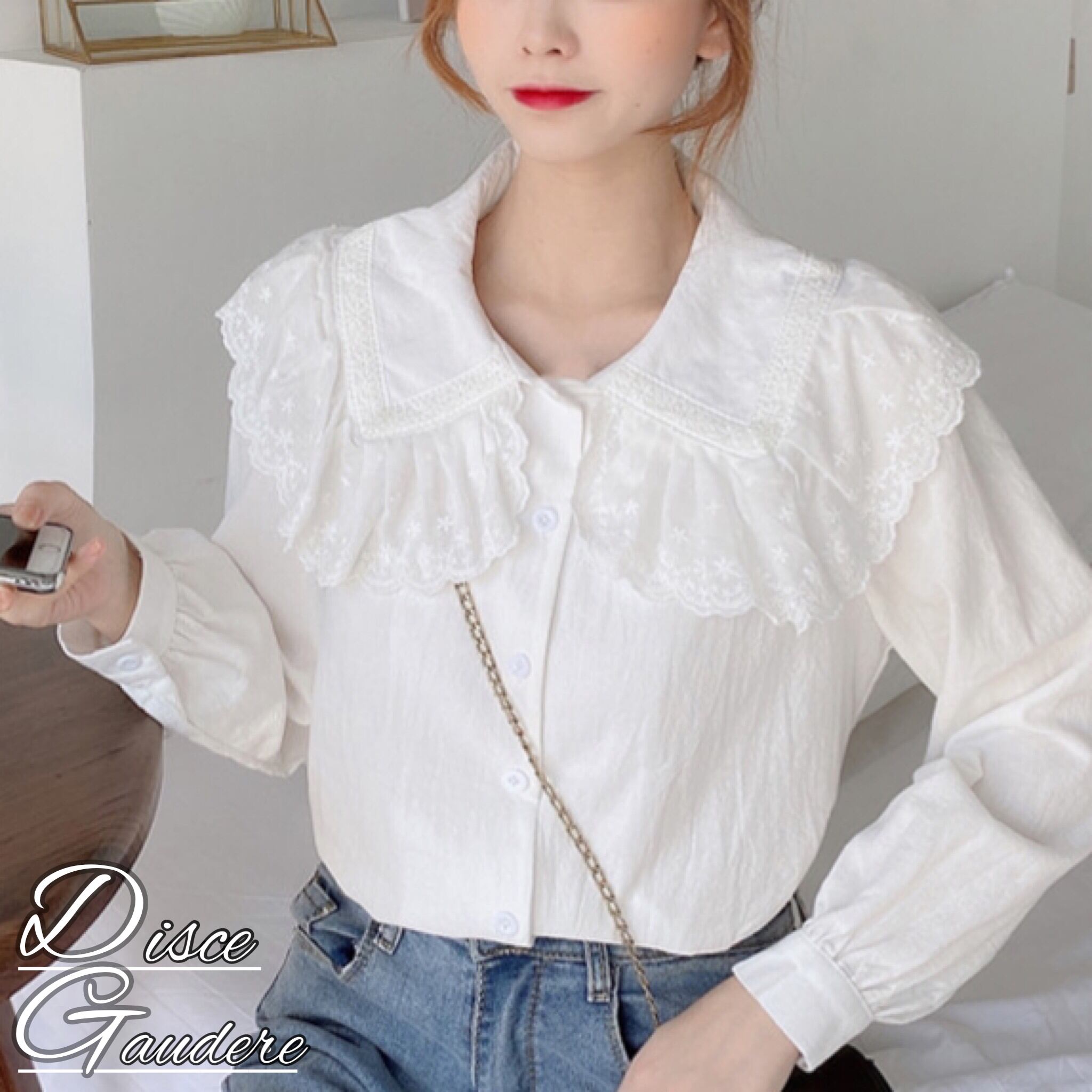 【韓国通販 dgo】french big-collar white tops(B1278)