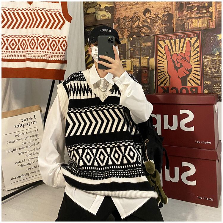 【韓国通販 dgo】v-neck stripe vest 2colors(B1240)