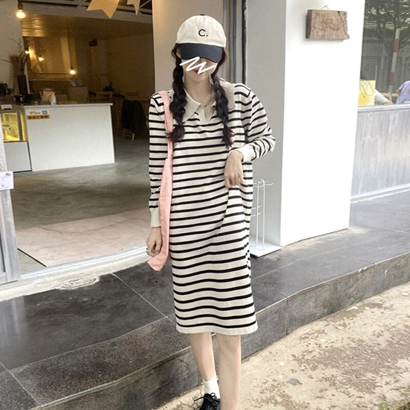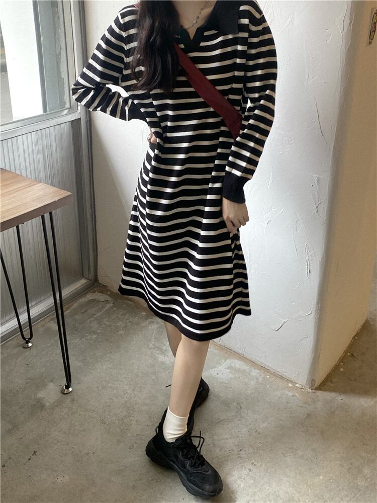 【韓国通販 dgo】stripe casual knit dress 2colors(B1306)