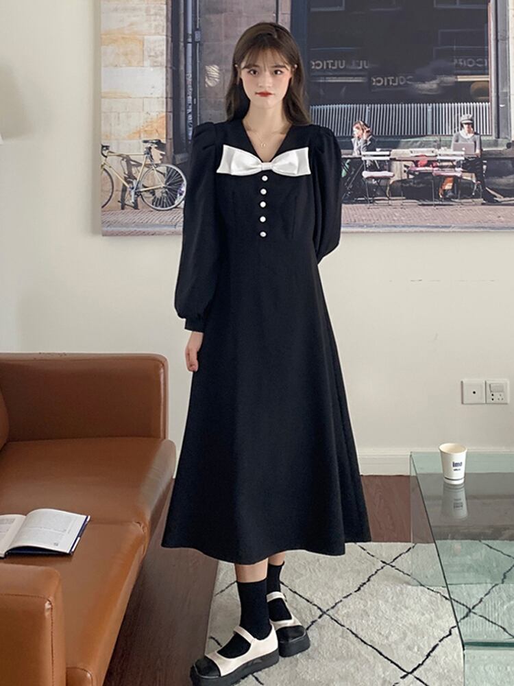 【韓国通販 dgo】french retro v-neck dress 2colors (B1337)