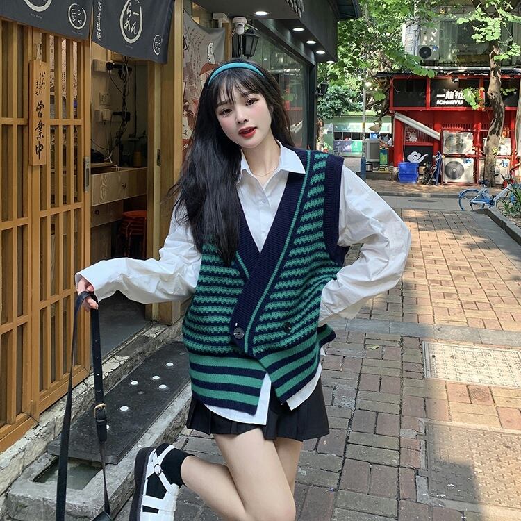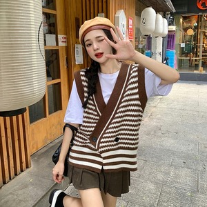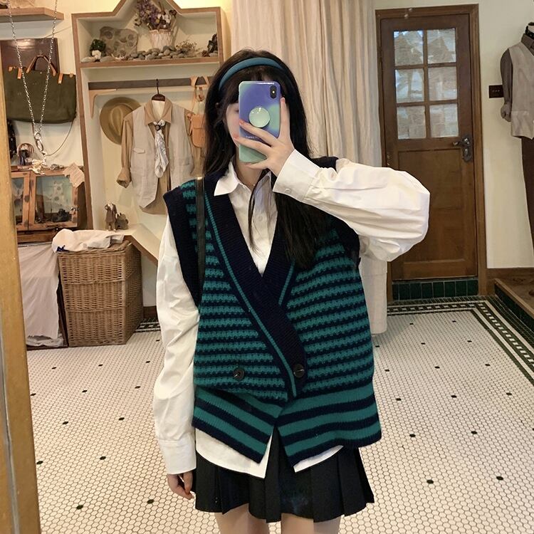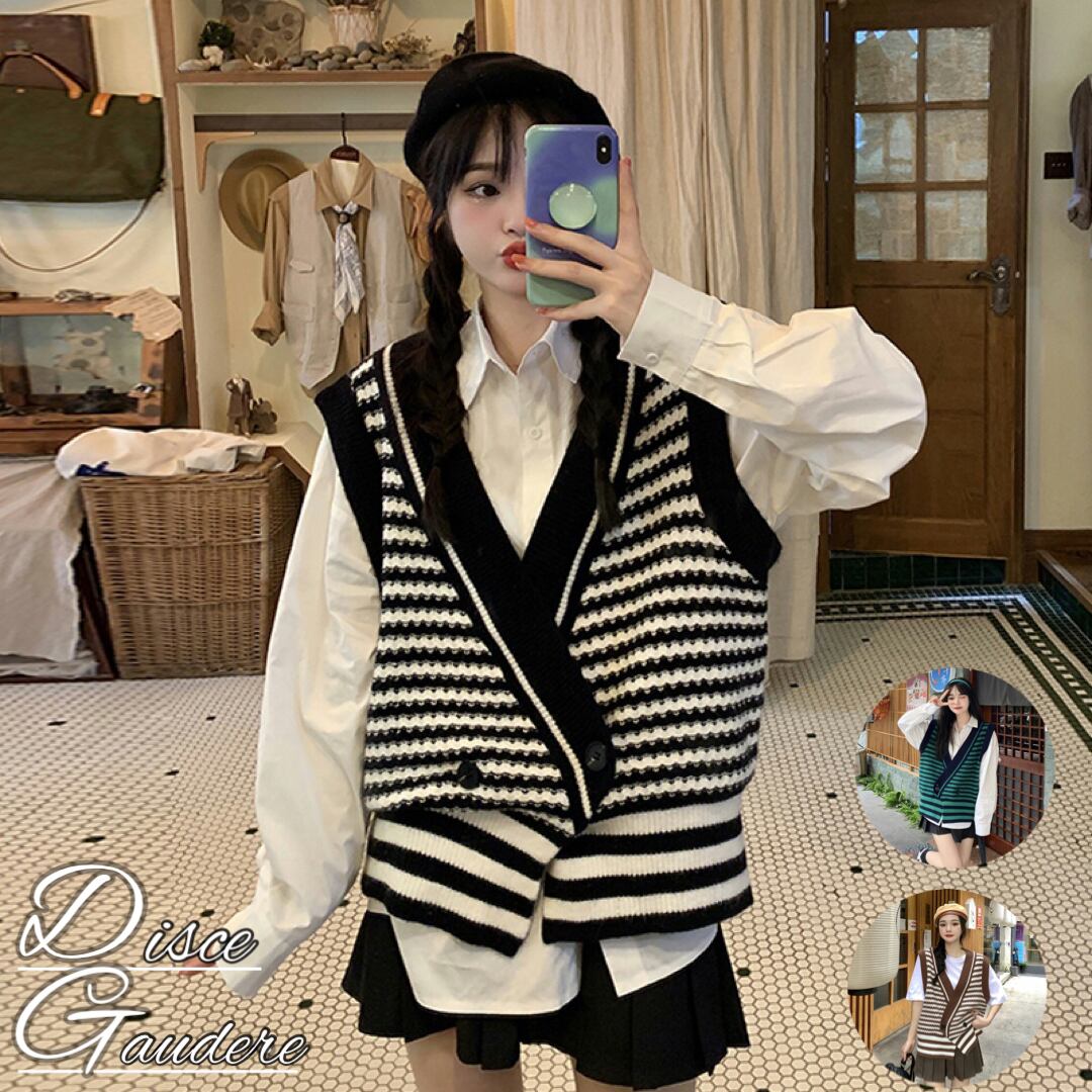 【韓国通販 dgo】v-neck knit stripe vest 3colors(B1343)