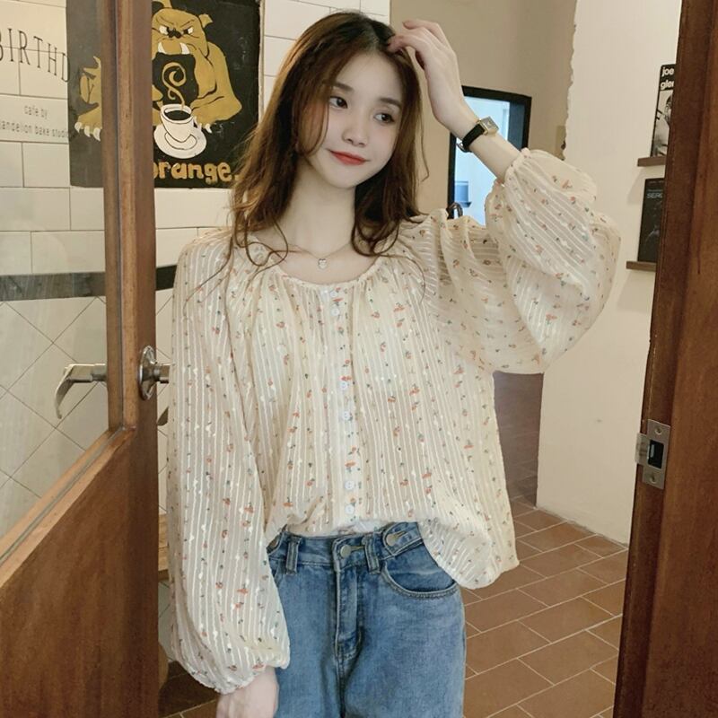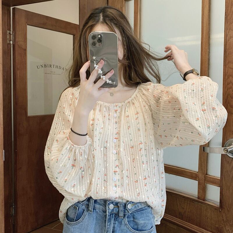 【韓国通販 dgo】french floral raglan sleeve blouse(B1351)
