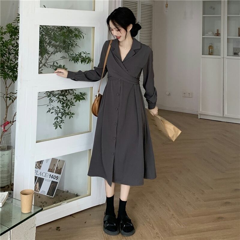 【韓国通販 dgo】high-waist long sleeve shirt dress 2colors(B1364)