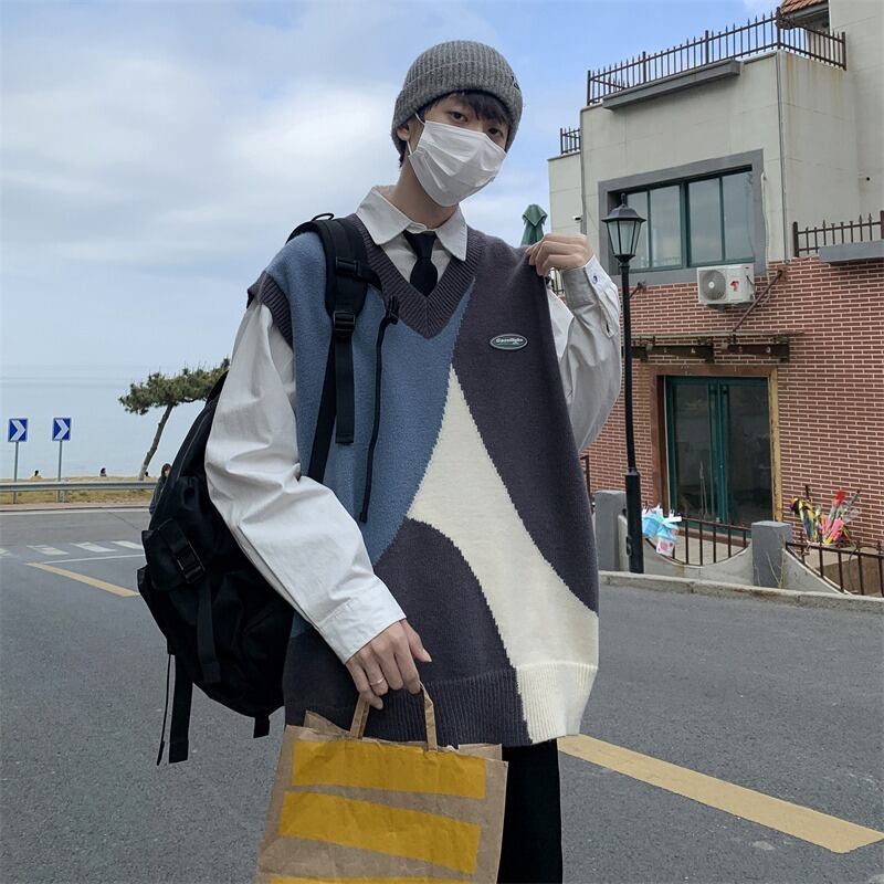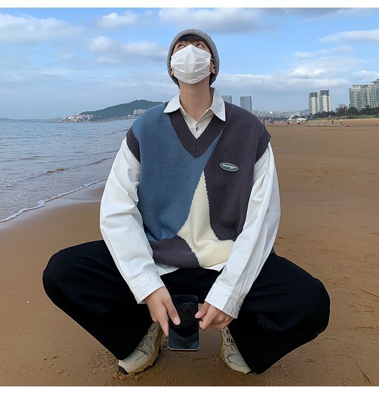 【韓国通販 dgo】contrast-color v-neck vest 2colors(B1355)