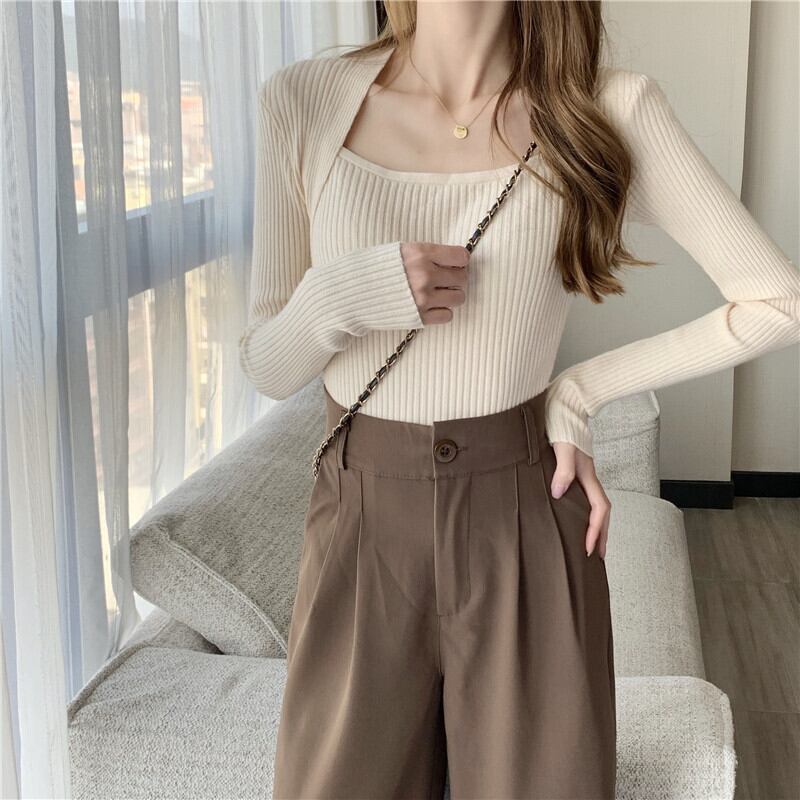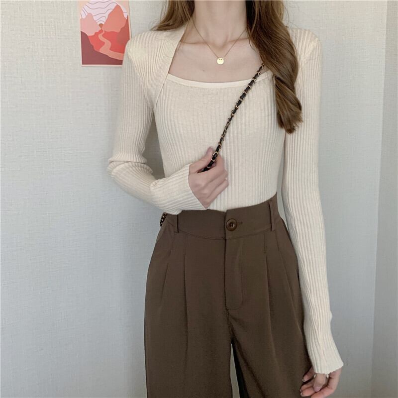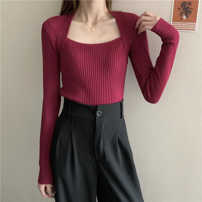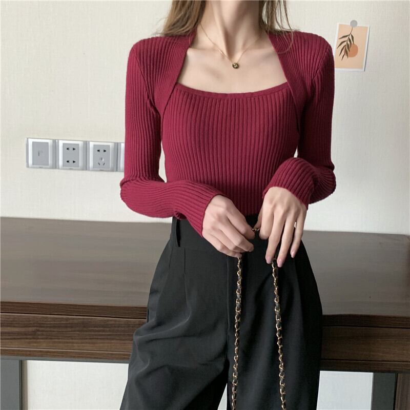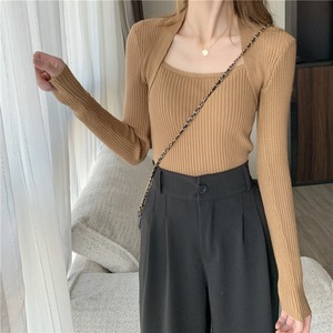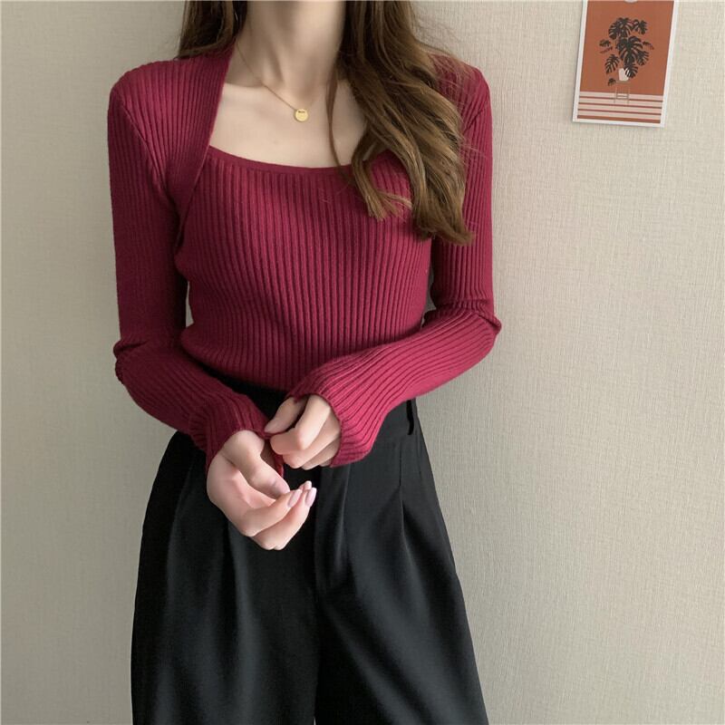 【韓国通販 dgo】スクエアネックニットトップス 7カラー アイボリー/ワインレッド/ブラック/キャラメル/グレー/ホワイト/ブルー(W1393)