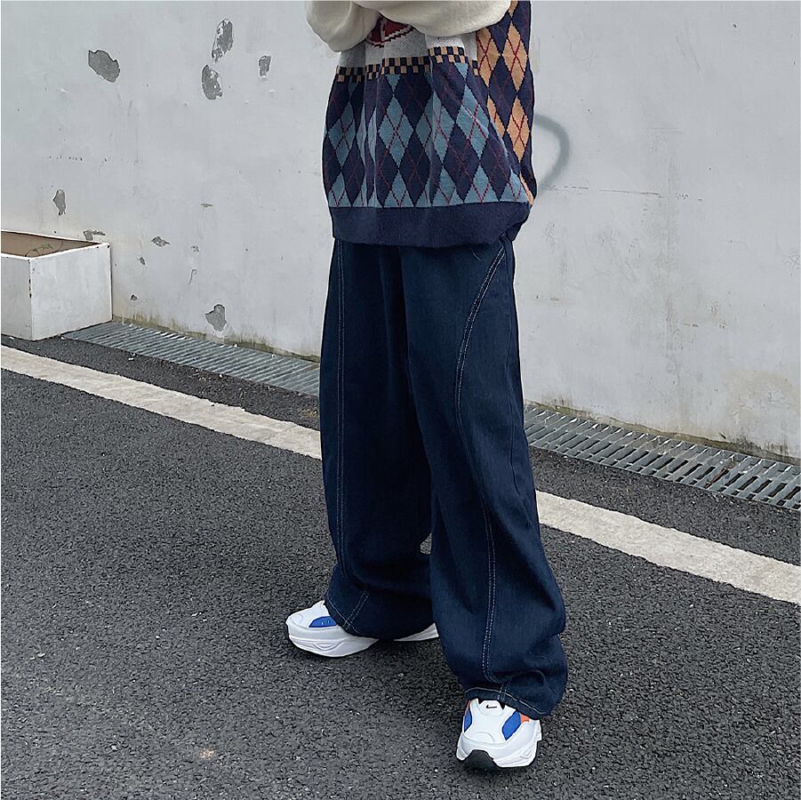 【韓国通販 dgo】ストレートステッチジーンズ ダークブル−(M1404)