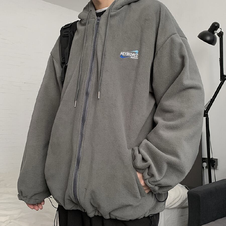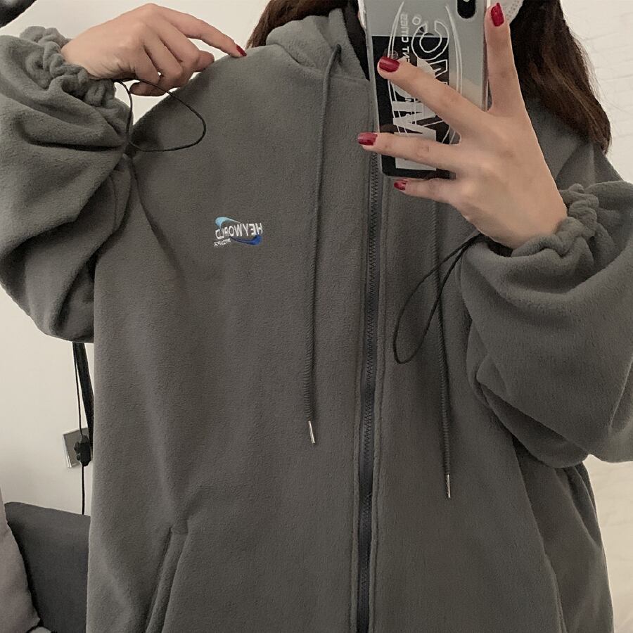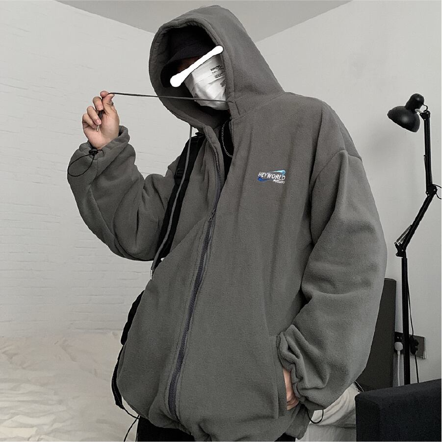 【韓国通販 dgo】レトロフード付フリース 2カラー グレー/ブラック(M1405)