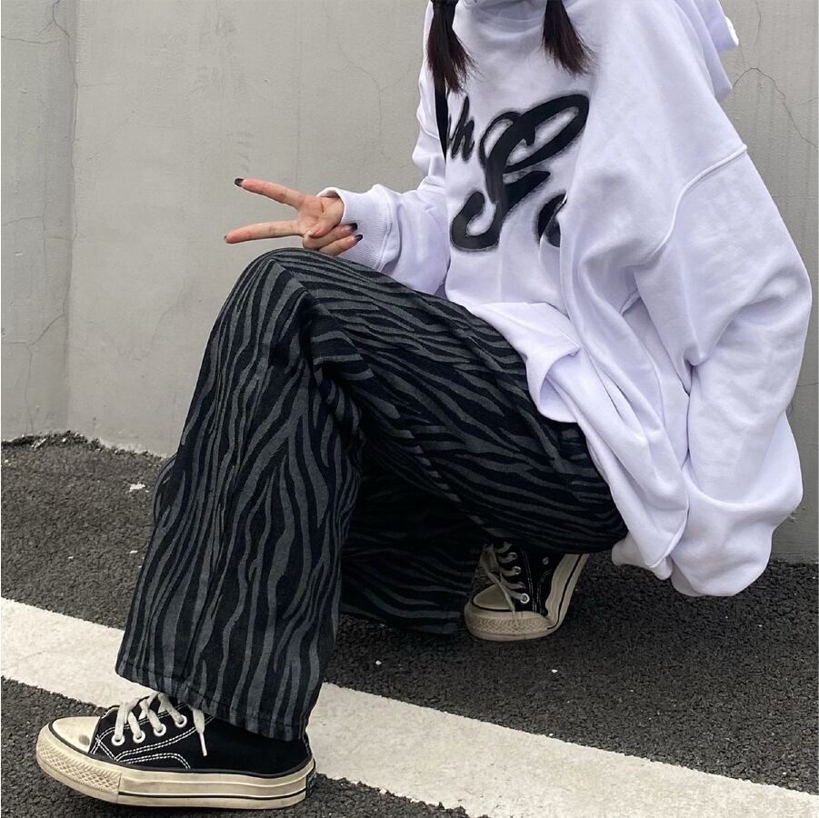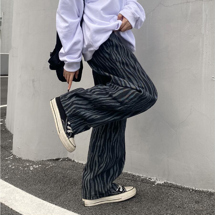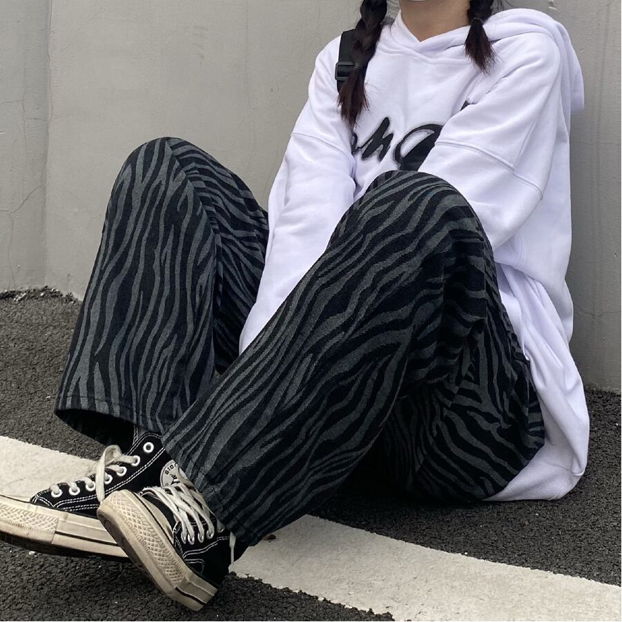 【韓国通販 dgo】ゼブラ柄ルーズストレートパンツ ブルー/ブラック(M1407)
