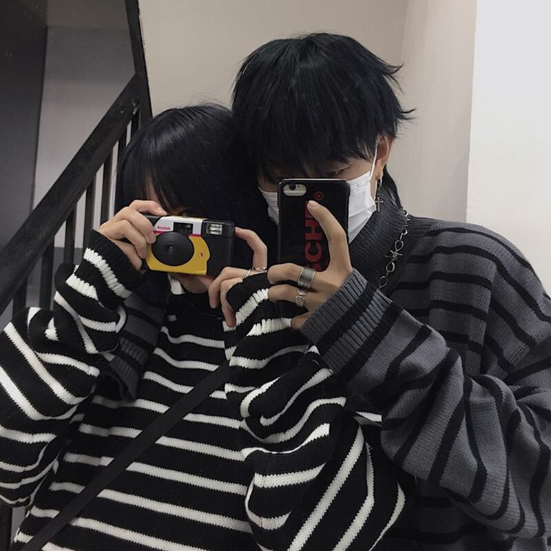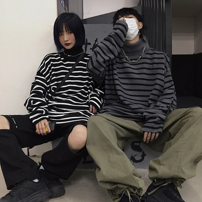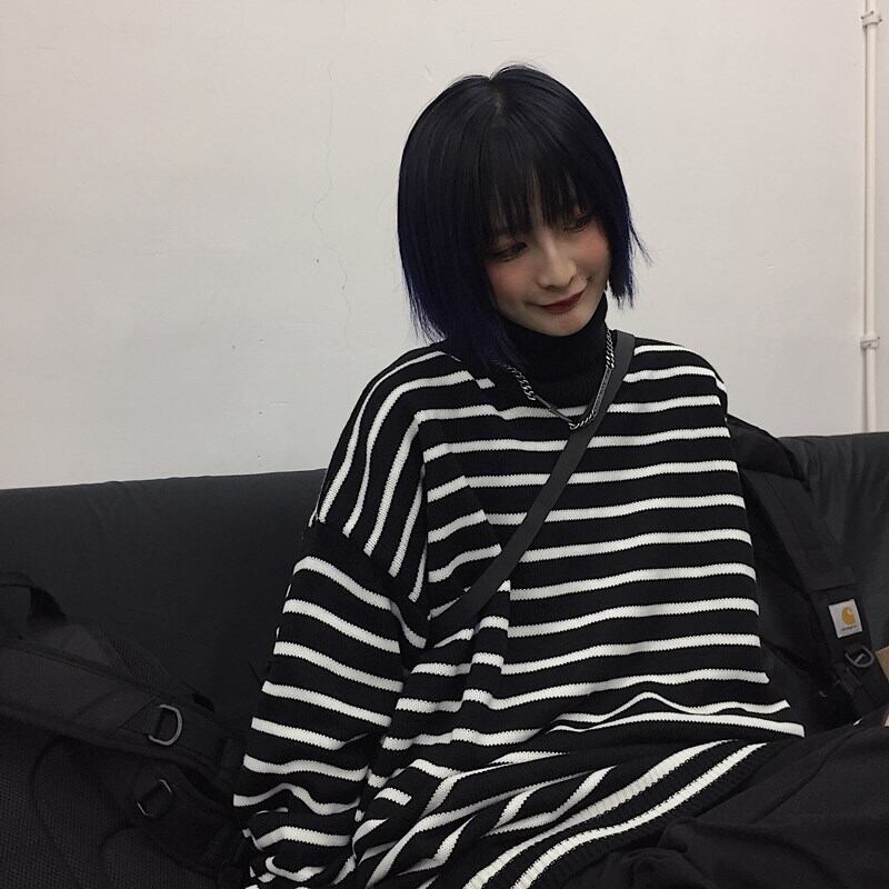 【韓国通販 dgo】クラシック ストライプ プルオーバー ユニセックス ダークグレー/ブラック(M1417)
