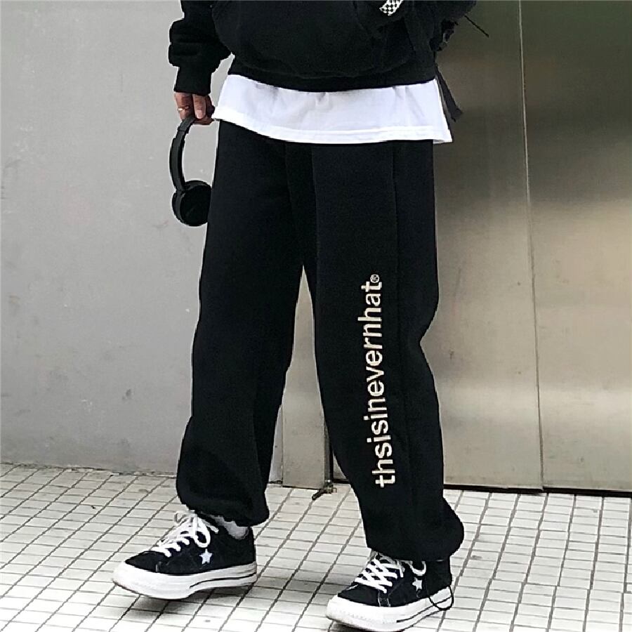 【韓国通販 dgo】ユニセックス カジュアルレターブラックパンツ(M1422)